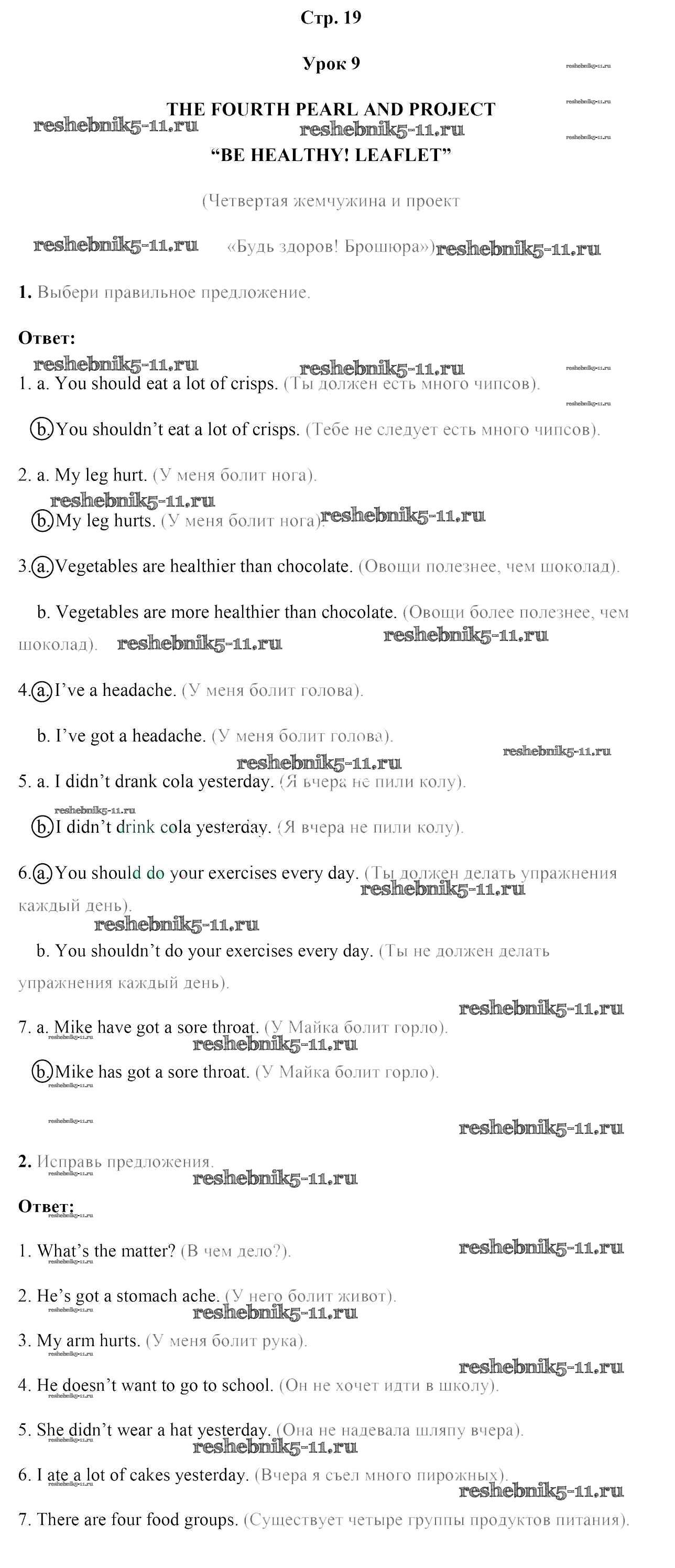 Готовая домашняя работа с ответами по Английскому языку за 5 класс Лапицкая, Севрюкова, Калишевич, Седунова Рабочая тетрадь Часть 1, 2 Аверсэв 2016 ФГОС - Часть 2. Страницы 19