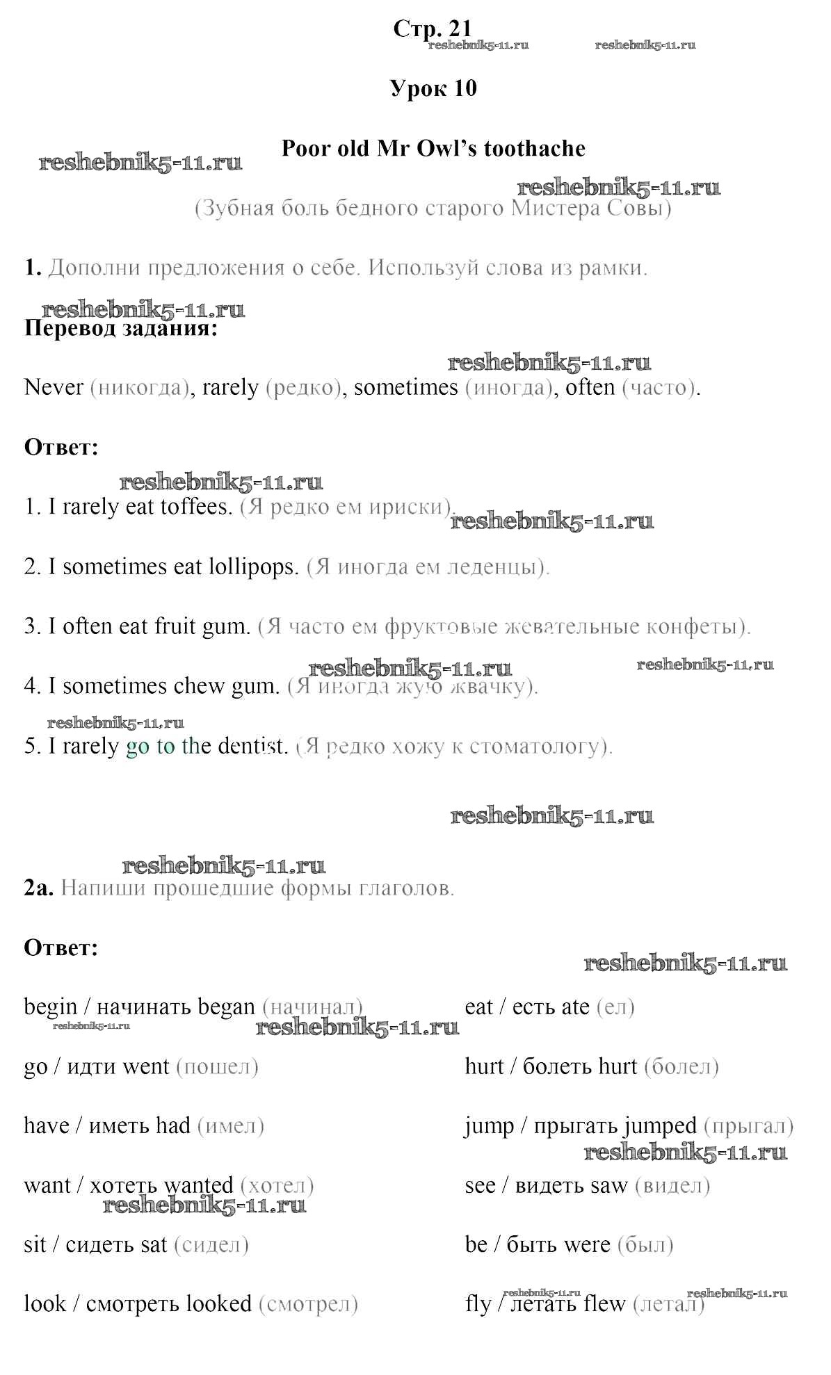 Готовая домашняя работа с ответами по Английскому языку за 5 класс Лапицкая, Севрюкова, Калишевич, Седунова Рабочая тетрадь Часть 1, 2 Аверсэв 2016 ФГОС - Часть 2. Страницы 21