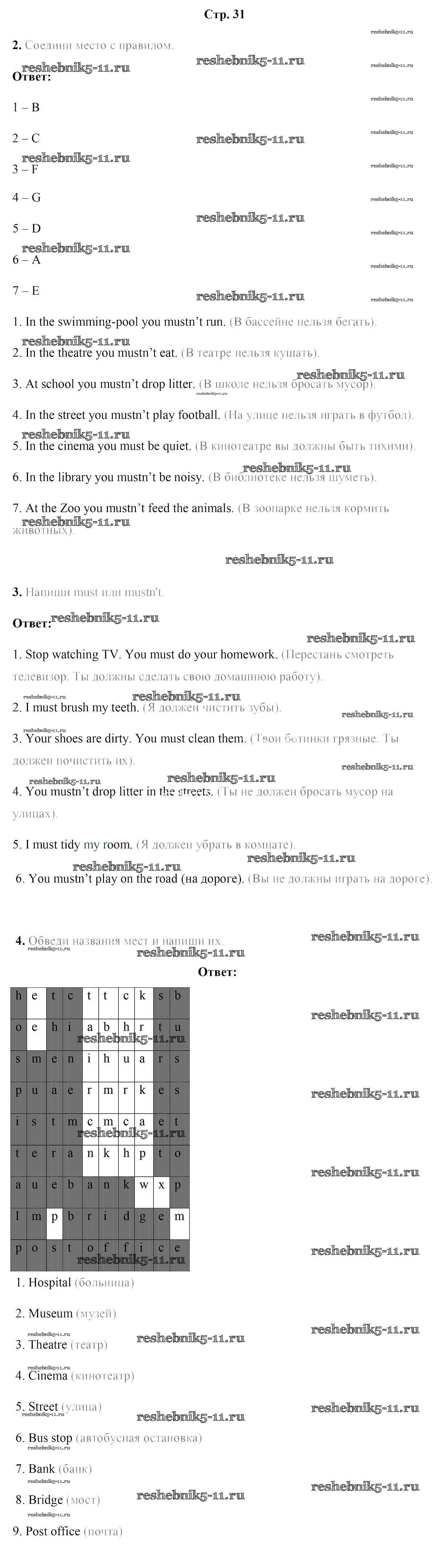 Готовая домашняя работа с ответами по Английскому языку за 5 класс Лапицкая, Севрюкова, Калишевич, Седунова Рабочая тетрадь Часть 1, 2 Аверсэв 2016 ФГОС - Часть 2. Страницы 31