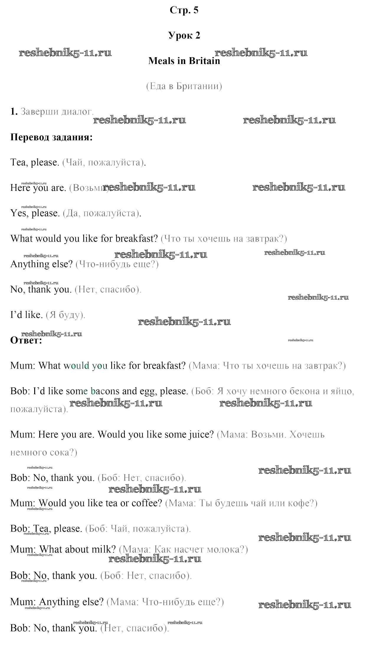 Готовая домашняя работа с ответами по Английскому языку за 5 класс Лапицкая, Севрюкова, Калишевич, Седунова Рабочая тетрадь Часть 1, 2 Аверсэв 2016 ФГОС - Часть 2. Страницы 5