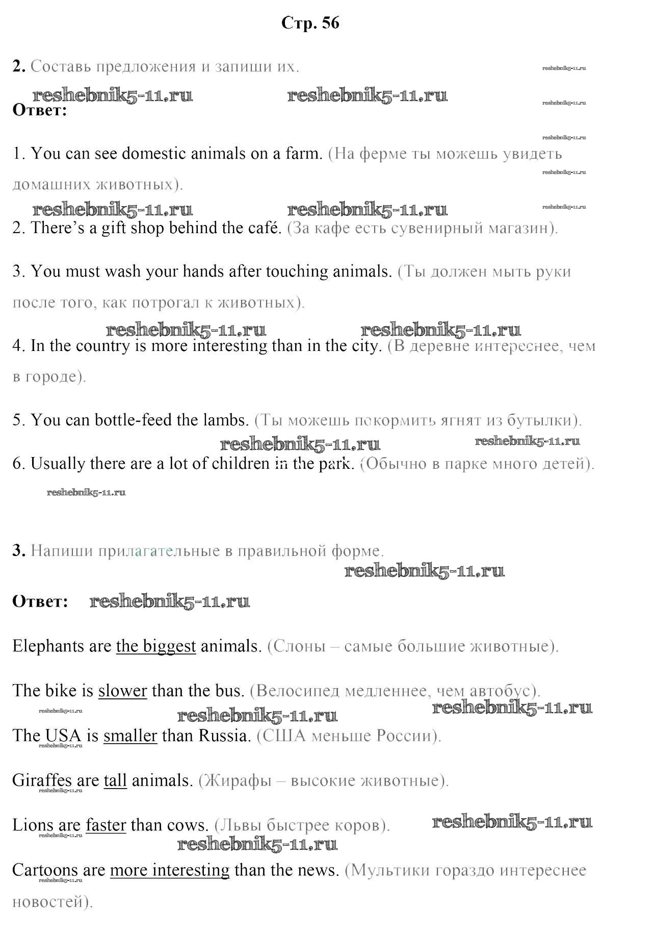 Готовая домашняя работа с ответами по Английскому языку за 5 класс Лапицкая, Севрюкова, Калишевич, Седунова Рабочая тетрадь Часть 1, 2 Аверсэв 2016 ФГОС - Часть 2. Страницы 56