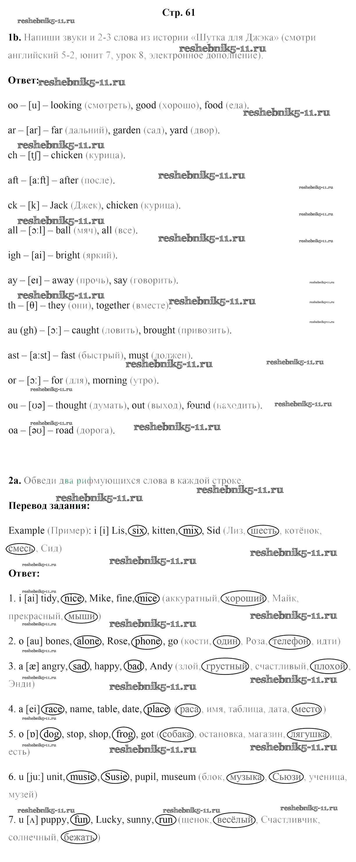 Готовая домашняя работа с ответами по Английскому языку за 5 класс Лапицкая, Севрюкова, Калишевич, Седунова Рабочая тетрадь Часть 1, 2 Аверсэв 2016 ФГОС - Часть 2. Страницы 61