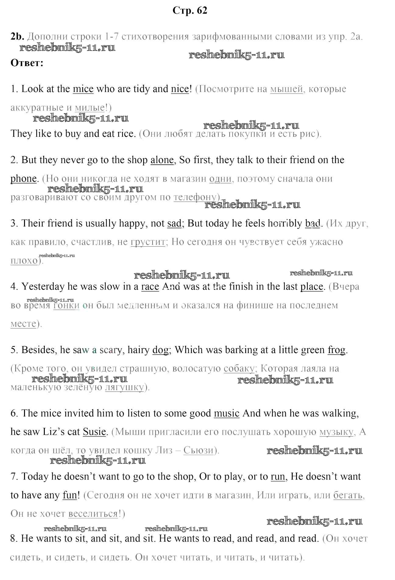 Готовая домашняя работа с ответами по Английскому языку за 5 класс Лапицкая, Севрюкова, Калишевич, Седунова Рабочая тетрадь Часть 1, 2 Аверсэв 2016 ФГОС - Часть 2. Страницы 62