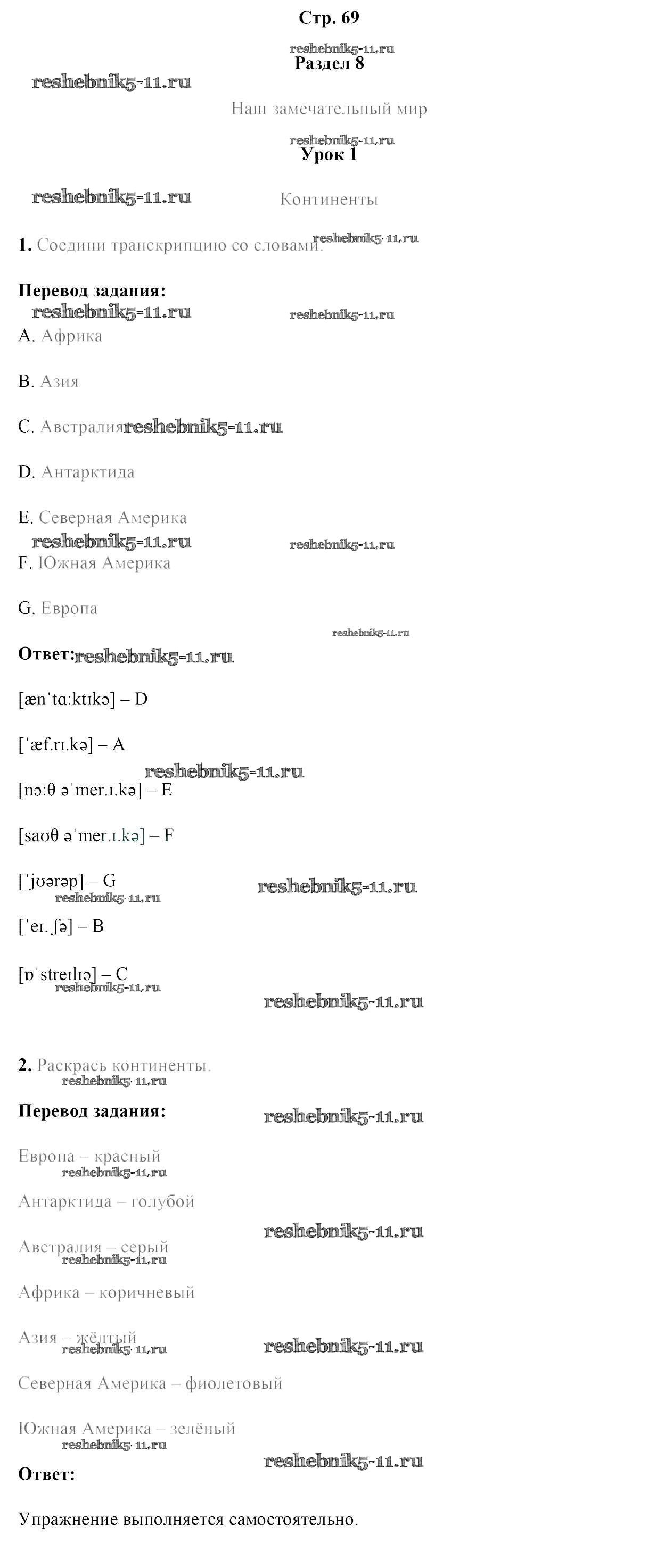 Готовая домашняя работа с ответами по Английскому языку за 5 класс Лапицкая, Севрюкова, Калишевич, Седунова Рабочая тетрадь Часть 1, 2 Аверсэв 2016 ФГОС - Часть 2. Страницы 69