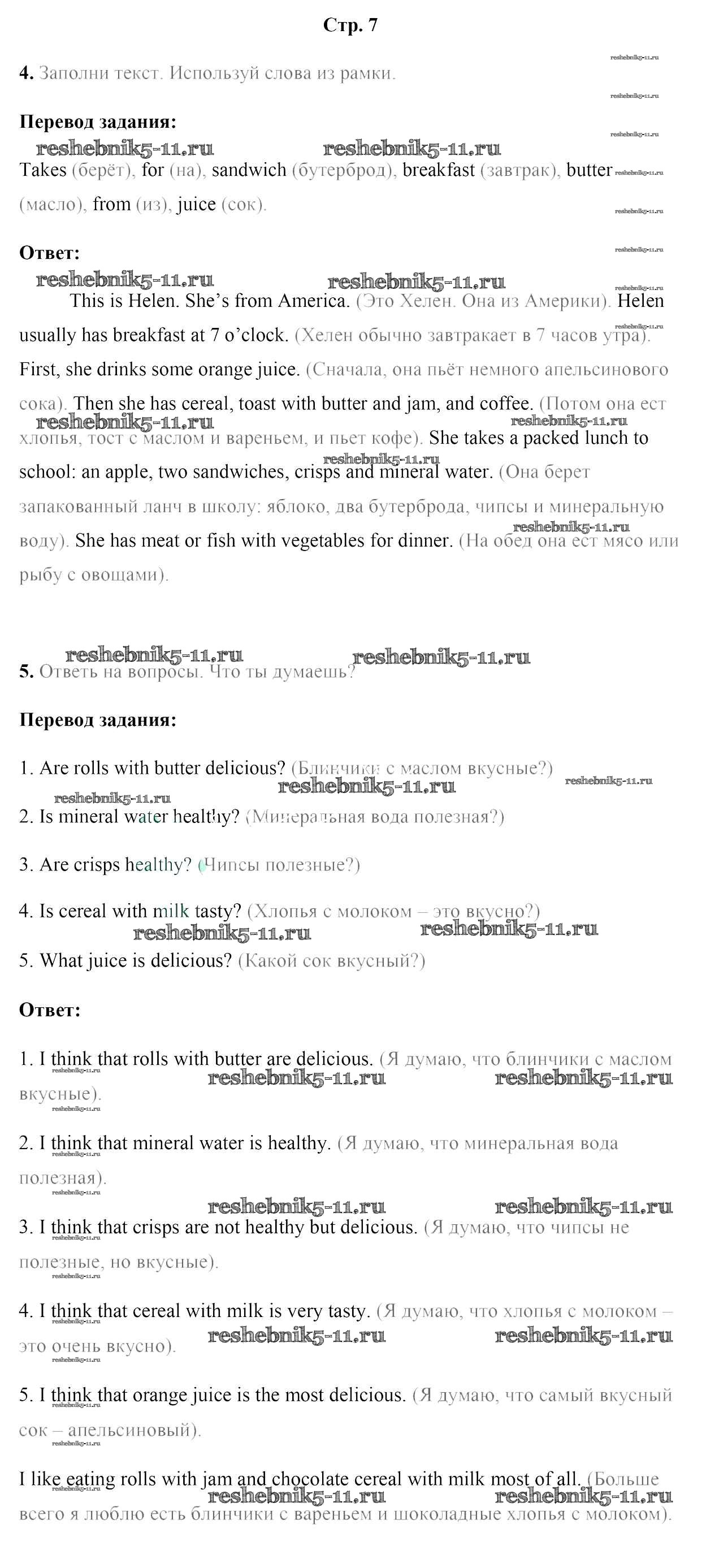 Готовая домашняя работа с ответами по Английскому языку за 5 класс Лапицкая, Севрюкова, Калишевич, Седунова Рабочая тетрадь Часть 1, 2 Аверсэв 2016 ФГОС - Часть 2. Страницы 7