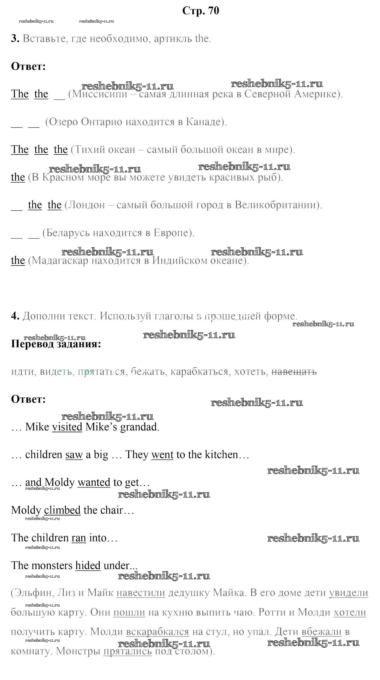 Готовая домашняя работа с ответами по Английскому языку за 5 класс Лапицкая, Севрюкова, Калишевич, Седунова Рабочая тетрадь Часть 1, 2 Аверсэв 2016 ФГОС - Часть 2. Страницы 70
