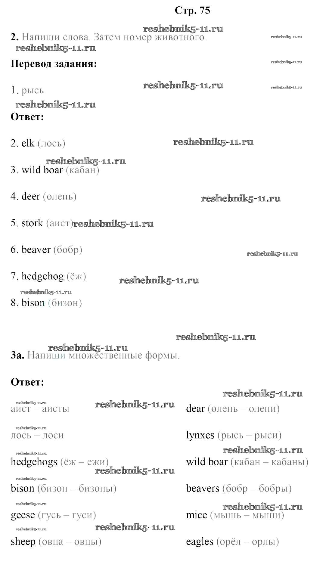 Готовая домашняя работа с ответами по Английскому языку за 5 класс Лапицкая, Севрюкова, Калишевич, Седунова Рабочая тетрадь Часть 1, 2 Аверсэв 2016 ФГОС - Часть 2. Страницы 75