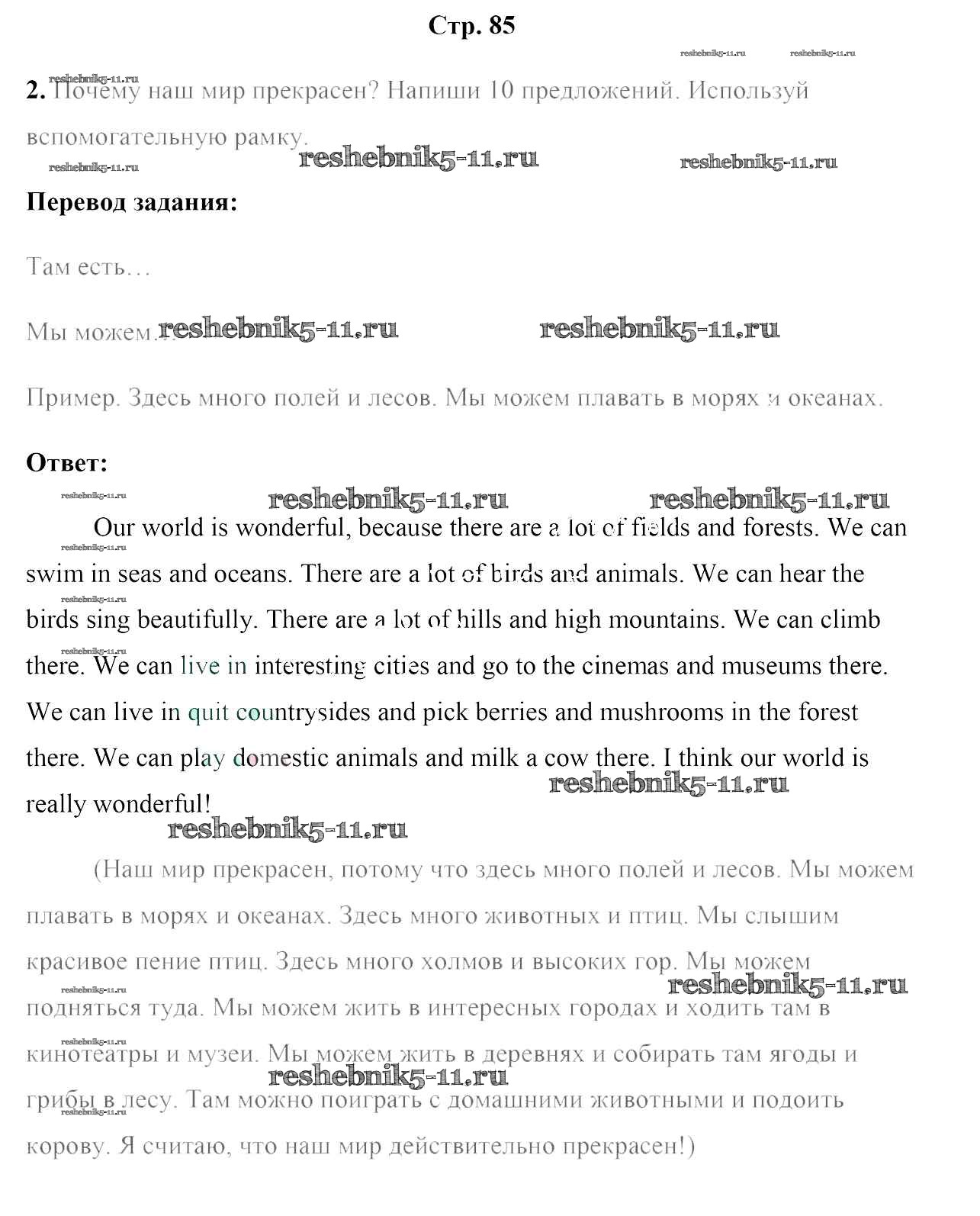 Готовая домашняя работа с ответами по Английскому языку за 5 класс Лапицкая, Севрюкова, Калишевич, Седунова Рабочая тетрадь Часть 1, 2 Аверсэв 2016 ФГОС - Часть 2. Страницы 85