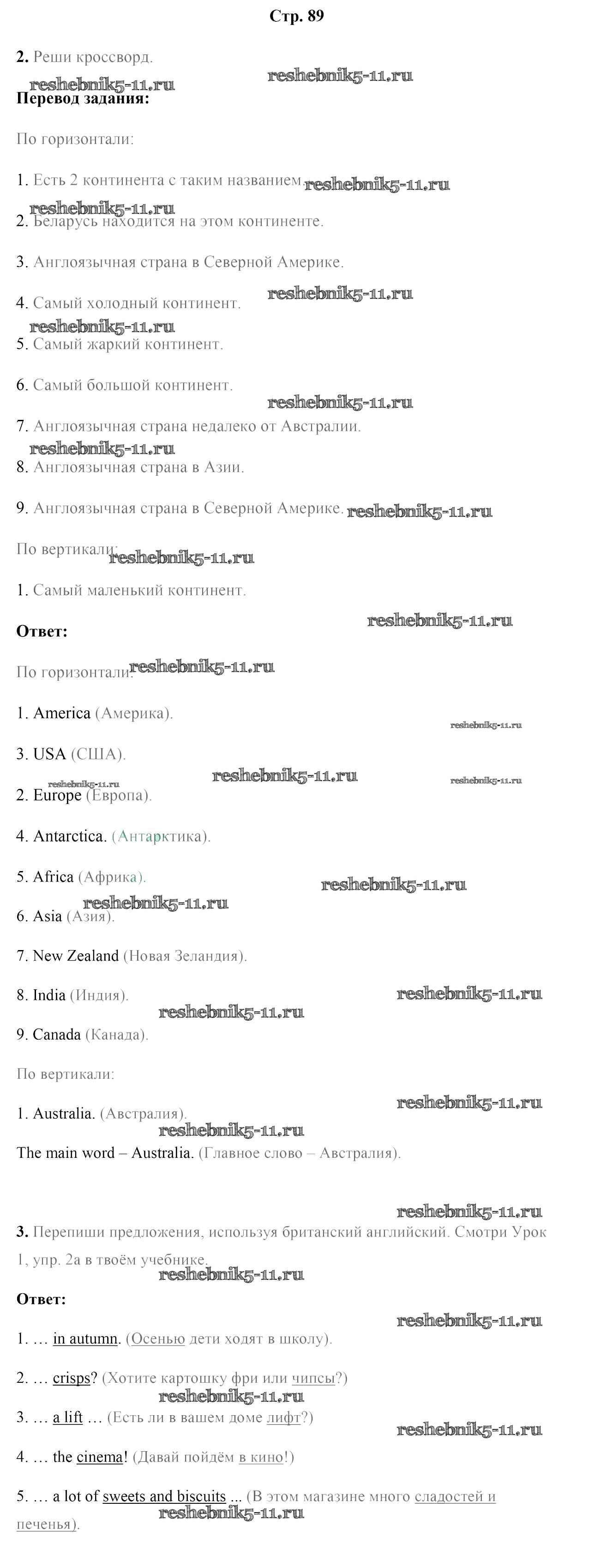 Готовая домашняя работа с ответами по Английскому языку за 5 класс Лапицкая, Севрюкова, Калишевич, Седунова Рабочая тетрадь Часть 1, 2 Аверсэв 2016 ФГОС - Часть 2. Страницы 89