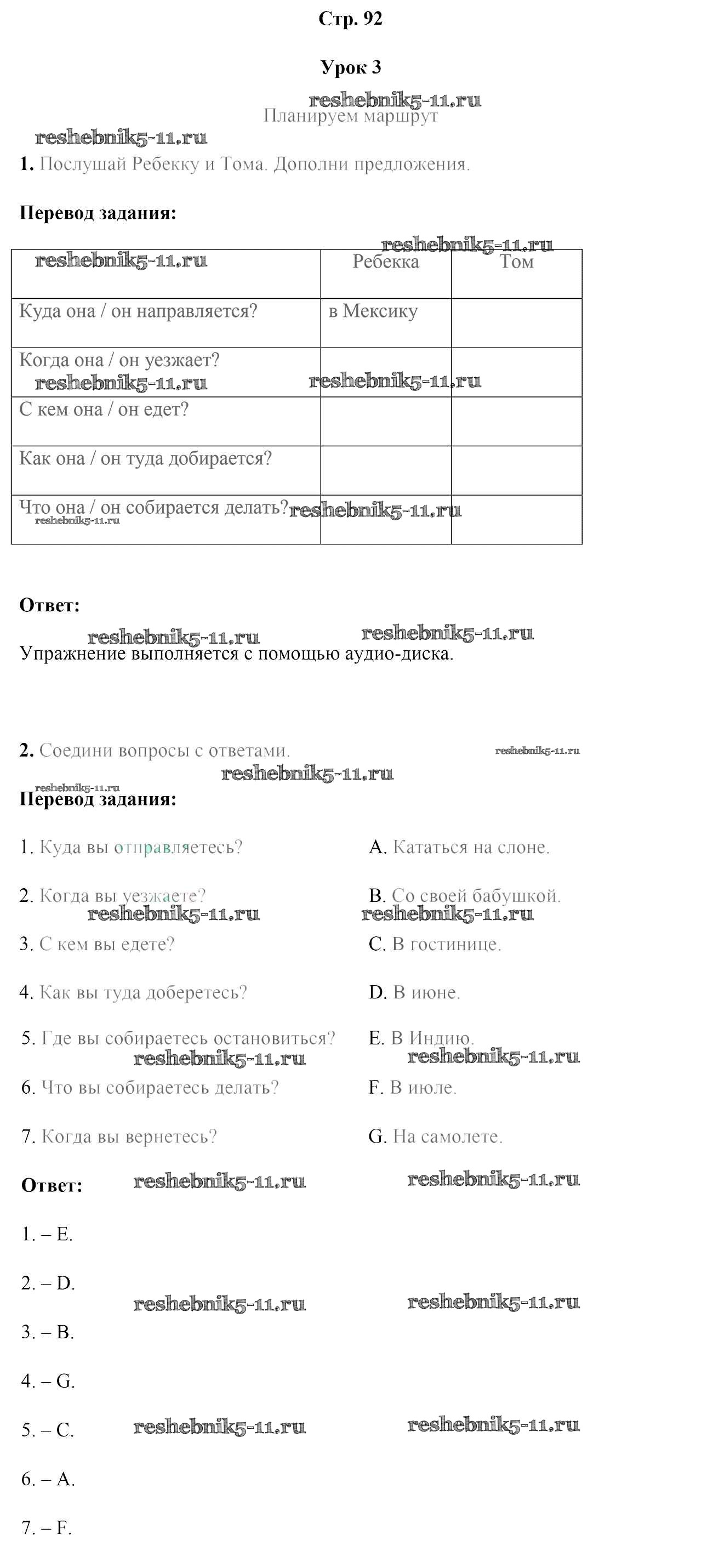 Готовая домашняя работа с ответами по Английскому языку за 5 класс Лапицкая, Севрюкова, Калишевич, Седунова Рабочая тетрадь Часть 1, 2 Аверсэв 2016 ФГОС - Часть 2. Страницы 92