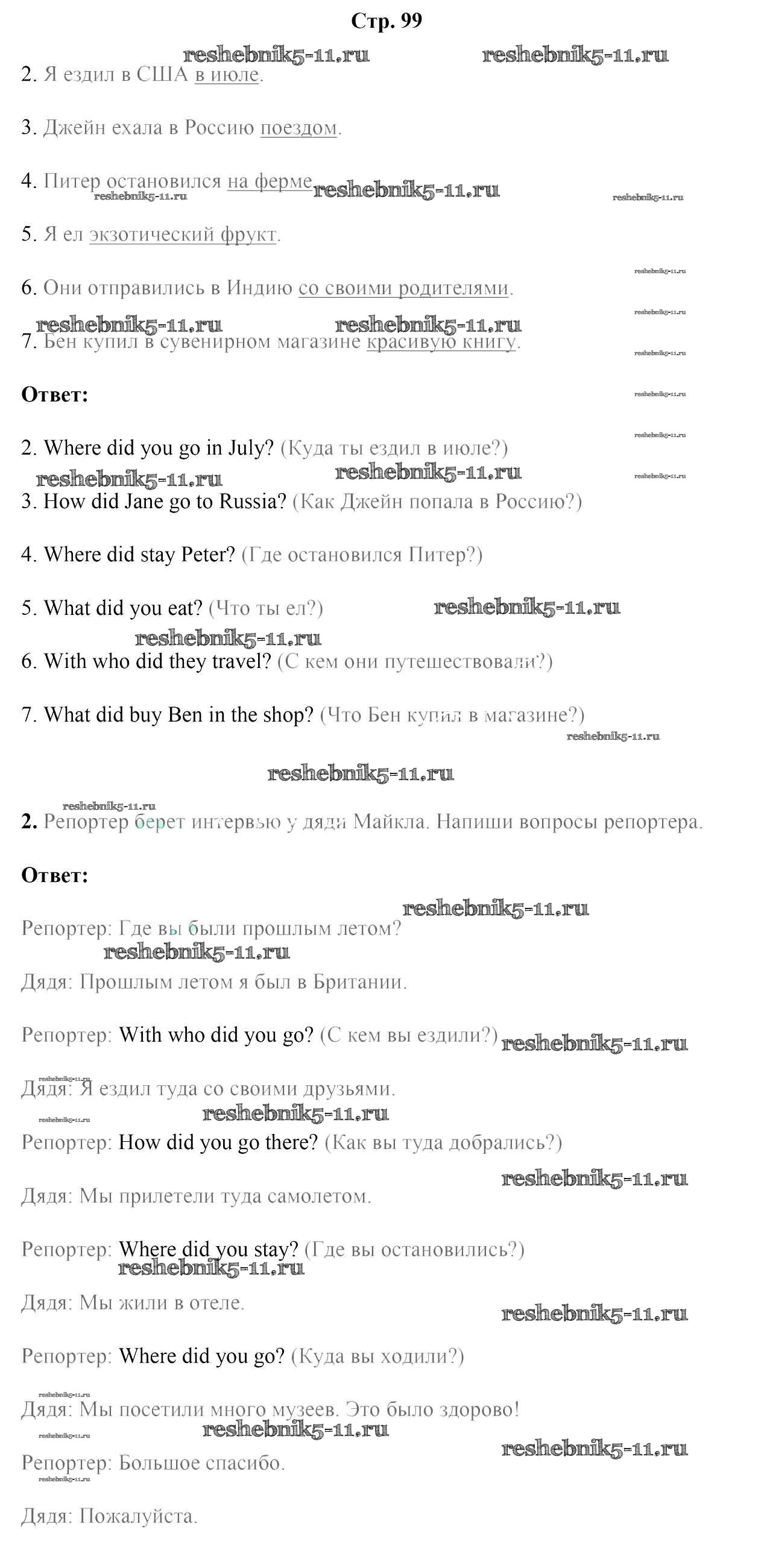Готовая домашняя работа с ответами по Английскому языку за 5 класс Лапицкая, Севрюкова, Калишевич, Седунова Рабочая тетрадь Часть 1, 2 Аверсэв 2016 ФГОС - Часть 2. Страницы 99