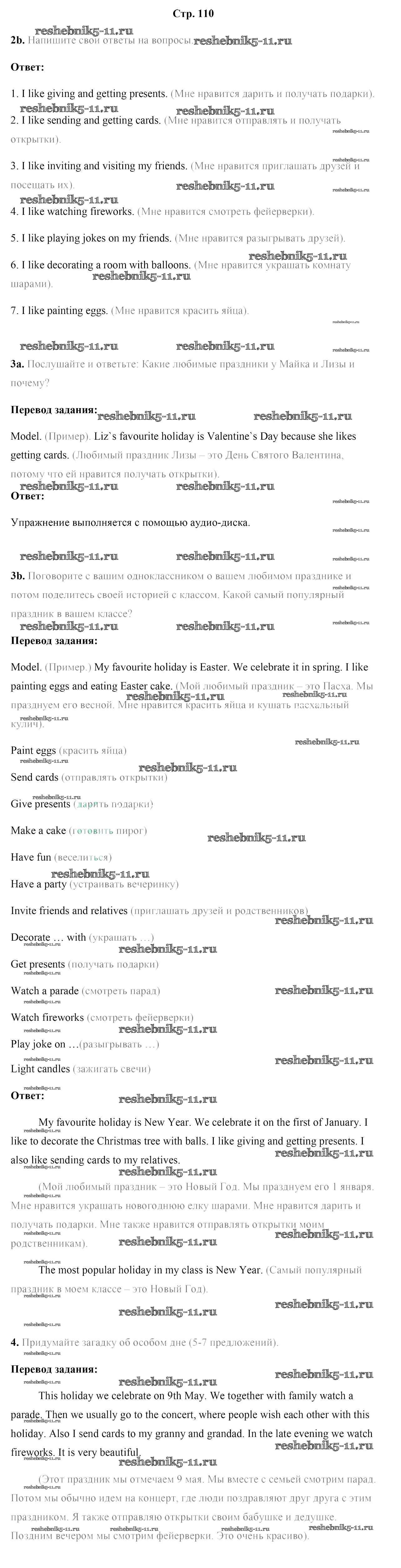 Готовая домашняя работа с ответами по Английскому языку за 5 класс Лапицкая, Калишевич, Севрюкова, Седунова Учебник Часть 1, 2 Народная асвета 2020 ФГОС - Часть 1. Страницы 110