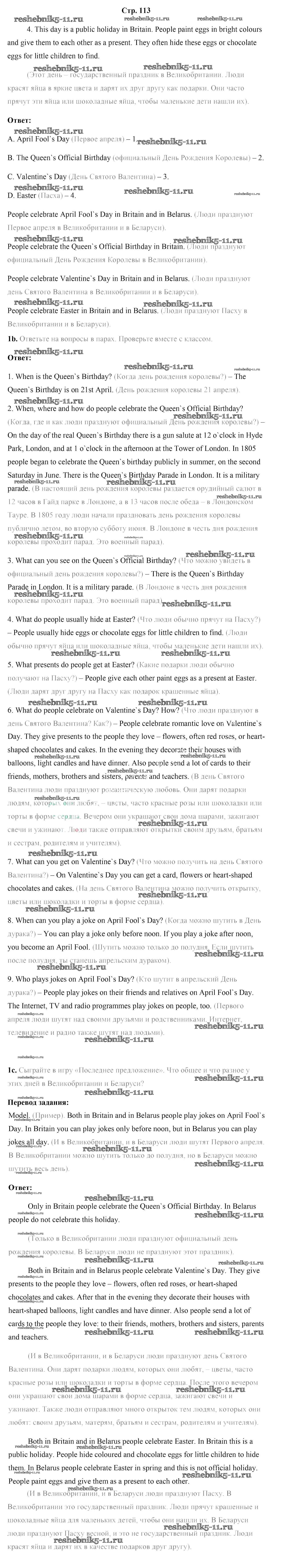 Готовая домашняя работа с ответами по Английскому языку за 5 класс Лапицкая, Калишевич, Севрюкова, Седунова Учебник Часть 1, 2 Народная асвета 2020 ФГОС - Часть 1. Страницы 113