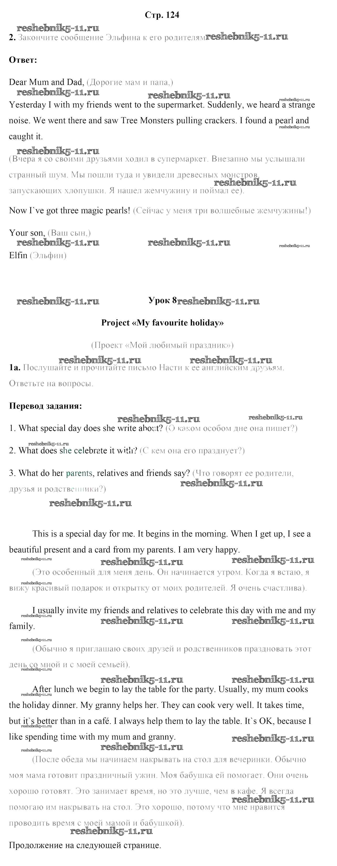 Английский язык за 5 класс Лапицкая Учебник Народная асвета часть 1. страница 124