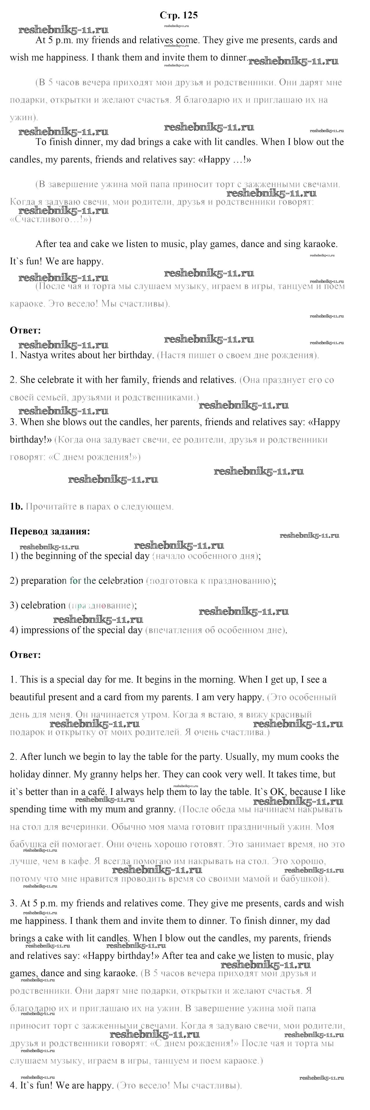 Готовая домашняя работа с ответами по Английскому языку за 5 класс Лапицкая, Калишевич, Севрюкова, Седунова Учебник Часть 1, 2 Народная асвета 2020 ФГОС - Часть 1. Страницы 125