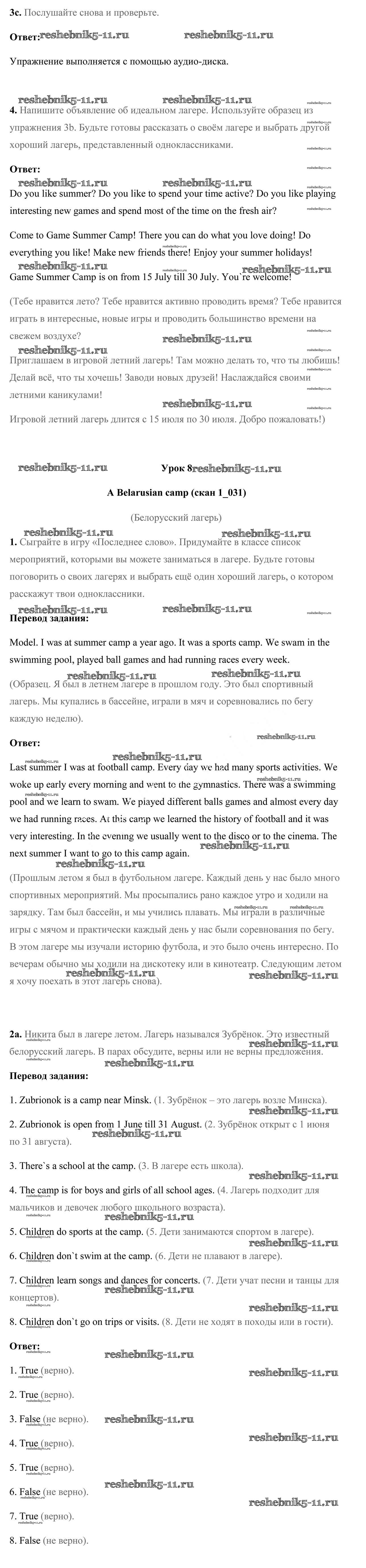 Готовая домашняя работа с ответами по Английскому языку за 5 класс Лапицкая, Калишевич, Севрюкова, Седунова Учебник Часть 1, 2 Народная асвета 2020 ФГОС - Часть 1. Страницы 31
