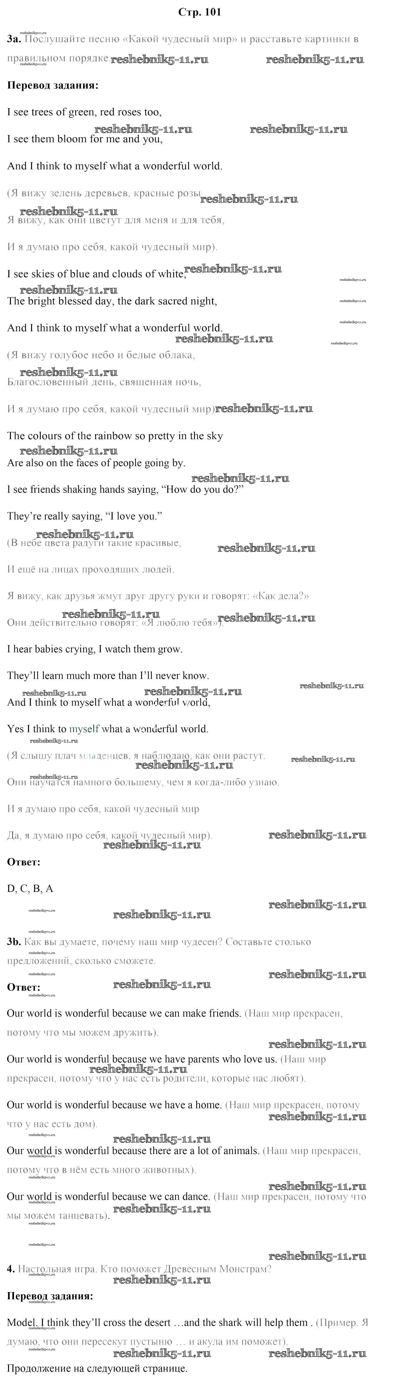 Готовая домашняя работа с ответами по Английскому языку за 5 класс Лапицкая, Калишевич, Севрюкова, Седунова Учебник Часть 1, 2 Народная асвета 2020 ФГОС - Часть 2. Страницы 101