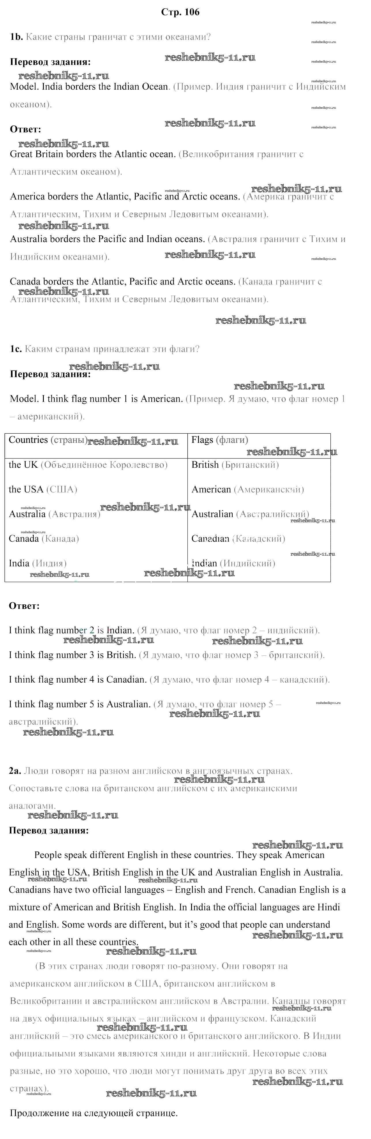 Готовая домашняя работа с ответами по Английскому языку за 5 класс Лапицкая, Калишевич, Севрюкова, Седунова Учебник Часть 1, 2 Народная асвета 2020 ФГОС - Часть 2. Страницы 106