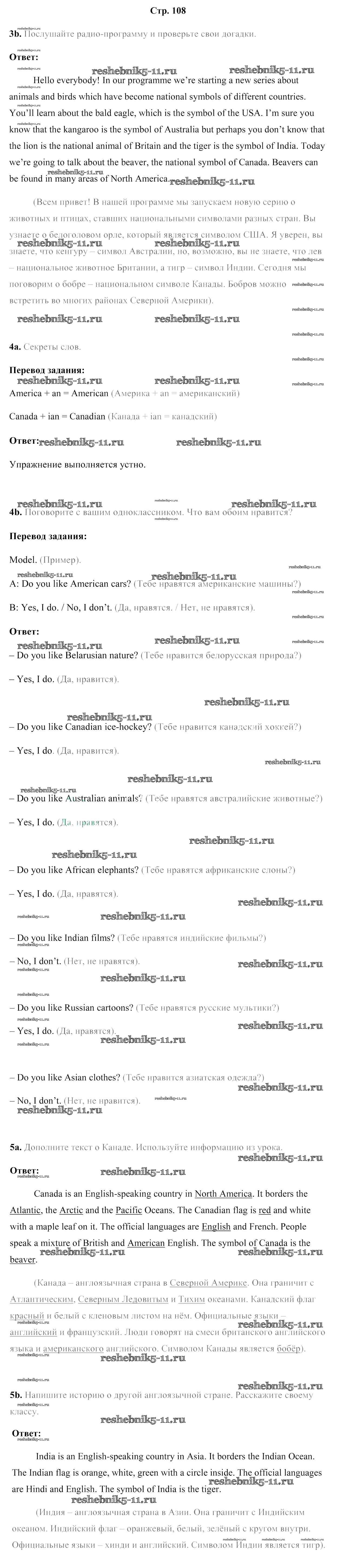 Готовая домашняя работа с ответами по Английскому языку за 5 класс Лапицкая, Калишевич, Севрюкова, Седунова Учебник Часть 1, 2 Народная асвета 2020 ФГОС - Часть 2. Страницы 108