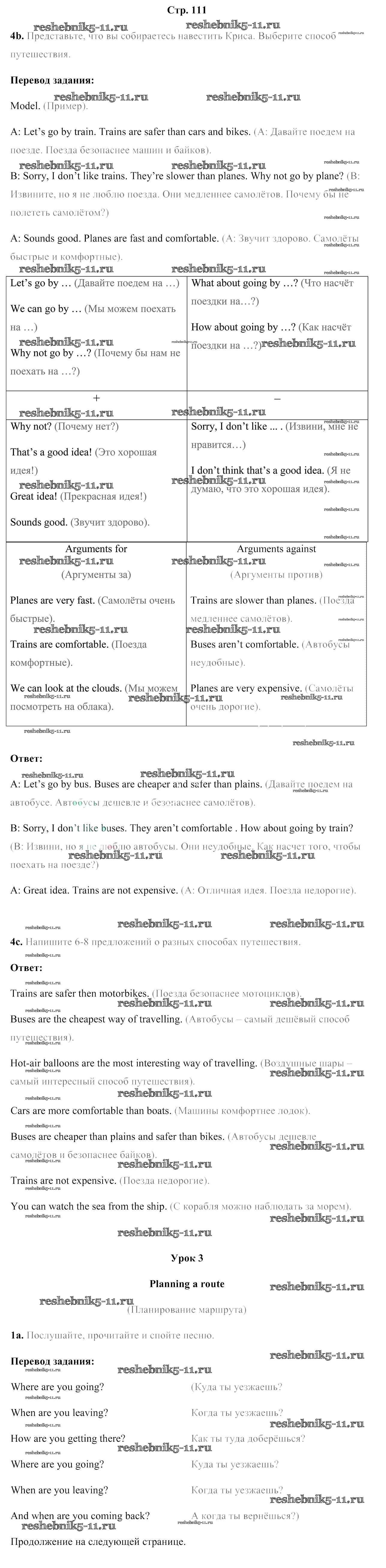 Готовая домашняя работа с ответами по Английскому языку за 5 класс Лапицкая, Калишевич, Севрюкова, Седунова Учебник Часть 1, 2 Народная асвета 2020 ФГОС - Часть 2. Страницы 111