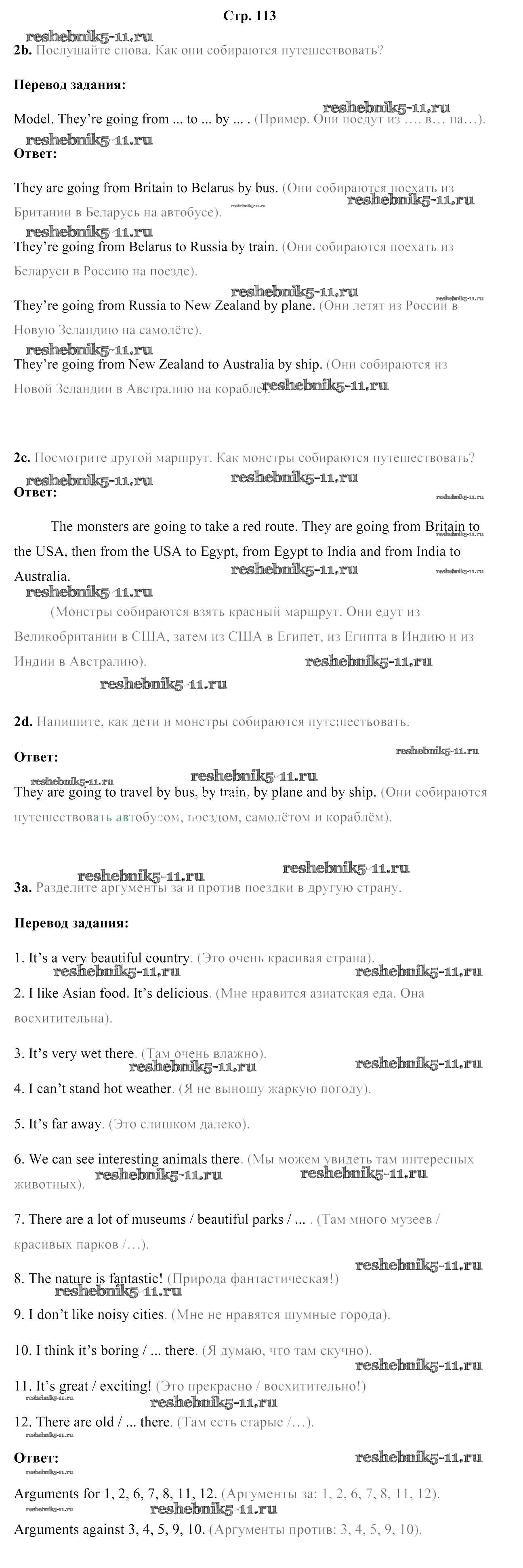 Готовая домашняя работа с ответами по Английскому языку за 5 класс Лапицкая, Калишевич, Севрюкова, Седунова Учебник Часть 1, 2 Народная асвета 2020 ФГОС - Часть 2. Страницы 113
