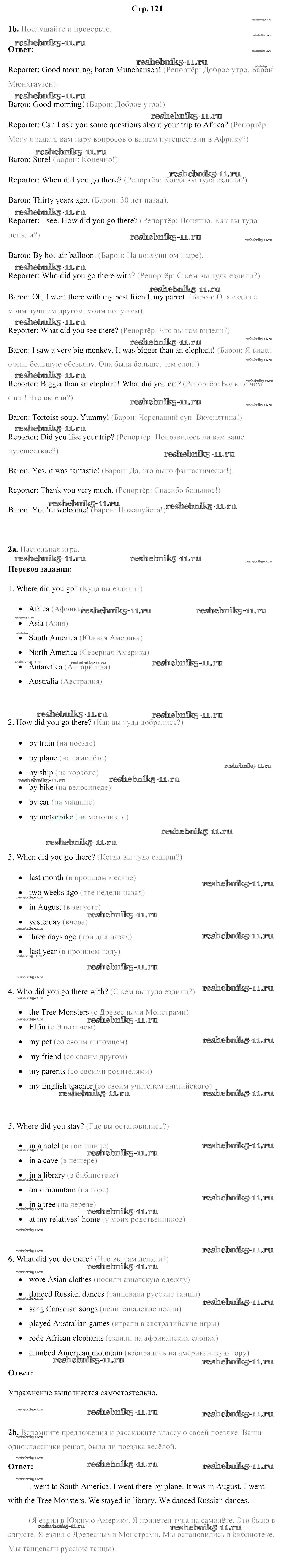 Готовая домашняя работа с ответами по Английскому языку за 5 класс Лапицкая, Калишевич, Севрюкова, Седунова Учебник Часть 1, 2 Народная асвета 2020 ФГОС - Часть 2. Страницы 121