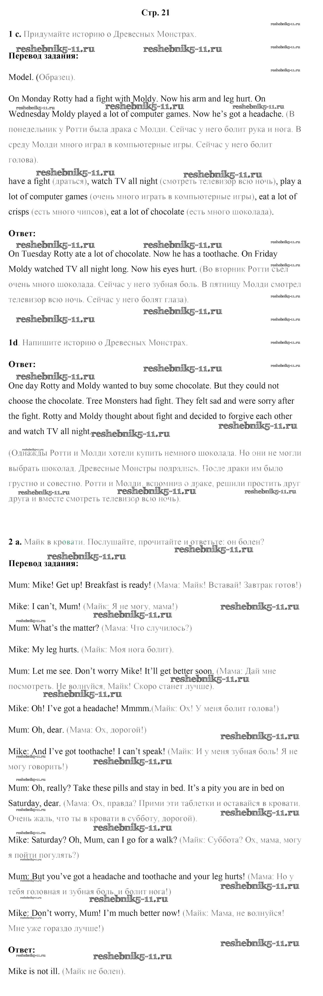Готовая домашняя работа с ответами по Английскому языку за 5 класс Лапицкая, Калишевич, Севрюкова, Седунова Учебник Часть 1, 2 Народная асвета 2020 ФГОС - Часть 2. Страницы 21