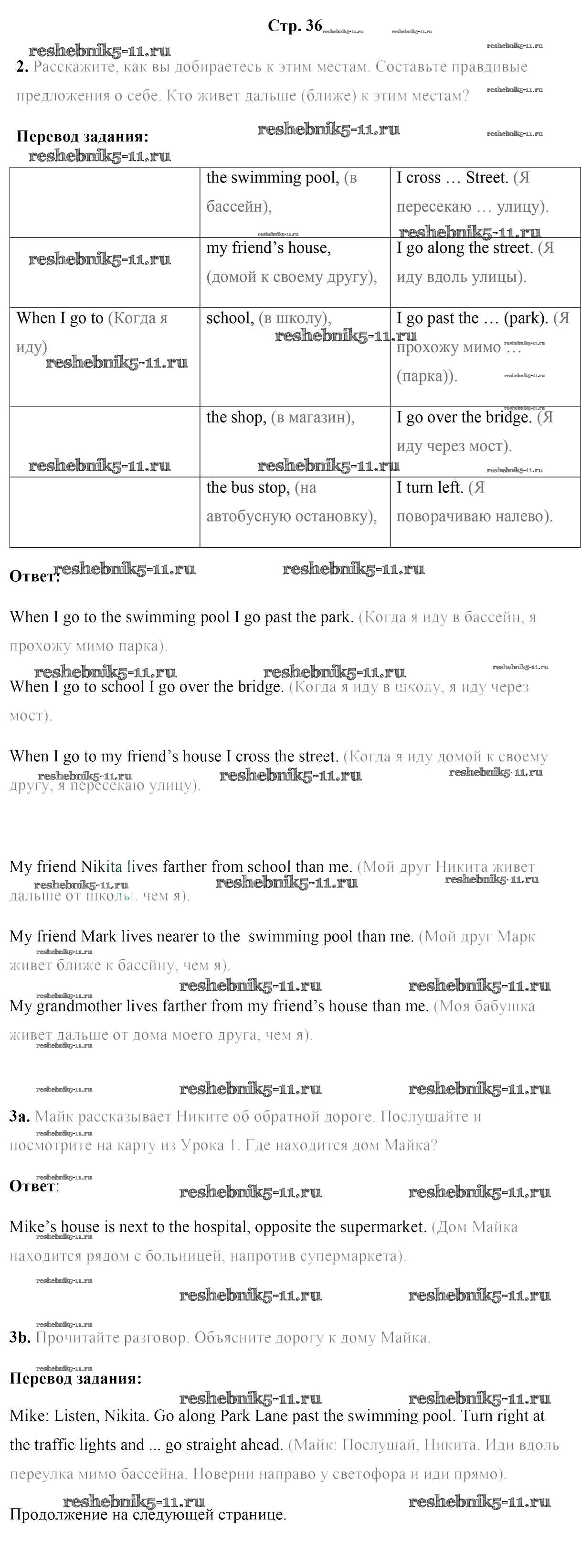 Готовая домашняя работа с ответами по Английскому языку за 5 класс Лапицкая, Калишевич, Севрюкова, Седунова Учебник Часть 1, 2 Народная асвета 2020 ФГОС - Часть 2. Страницы 36