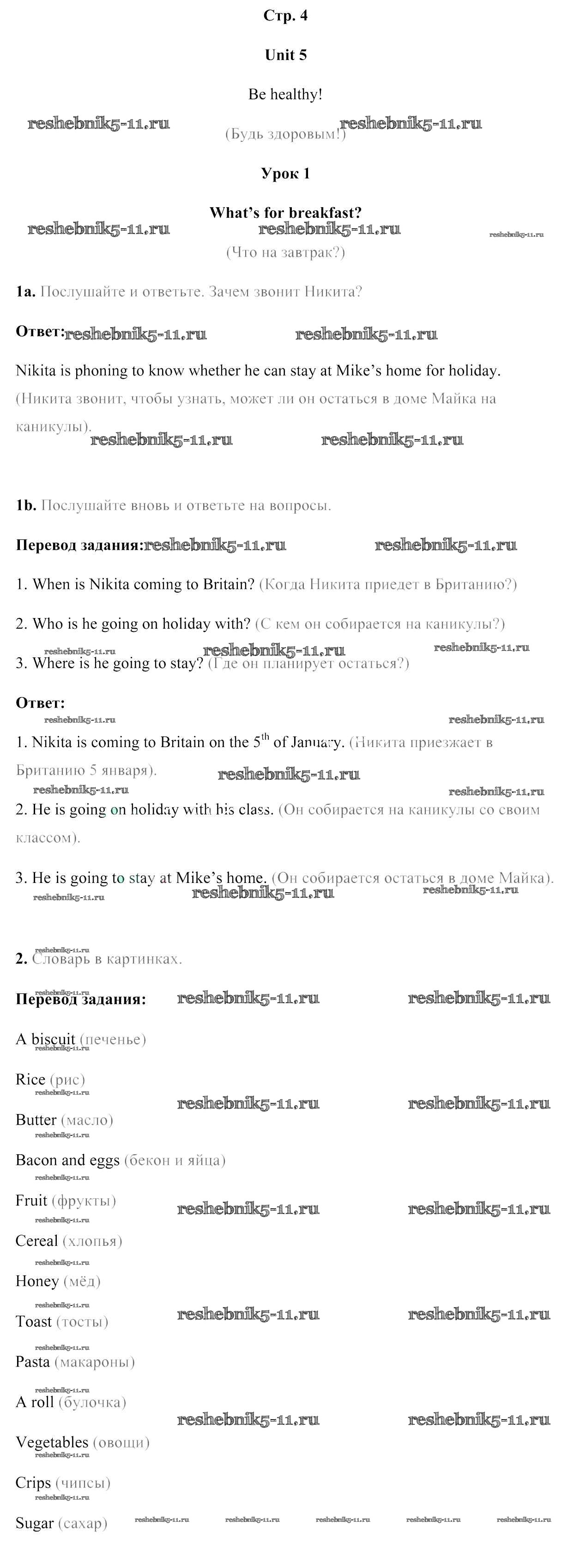 Готовая домашняя работа с ответами по Английскому языку за 5 класс Лапицкая, Калишевич, Севрюкова, Седунова Учебник Часть 1, 2 Народная асвета 2020 ФГОС - Часть 2. Страницы 4