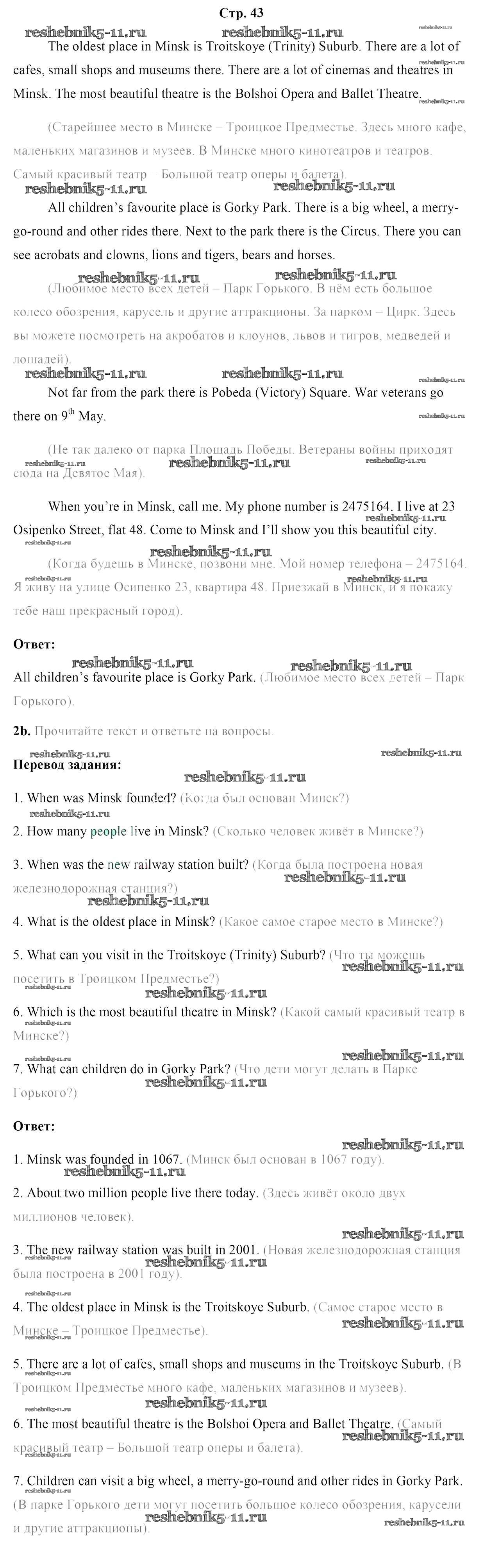 Готовая домашняя работа с ответами по Английскому языку за 5 класс Лапицкая, Калишевич, Севрюкова, Седунова Учебник Часть 1, 2 Народная асвета 2020 ФГОС - Часть 2. Страницы 43