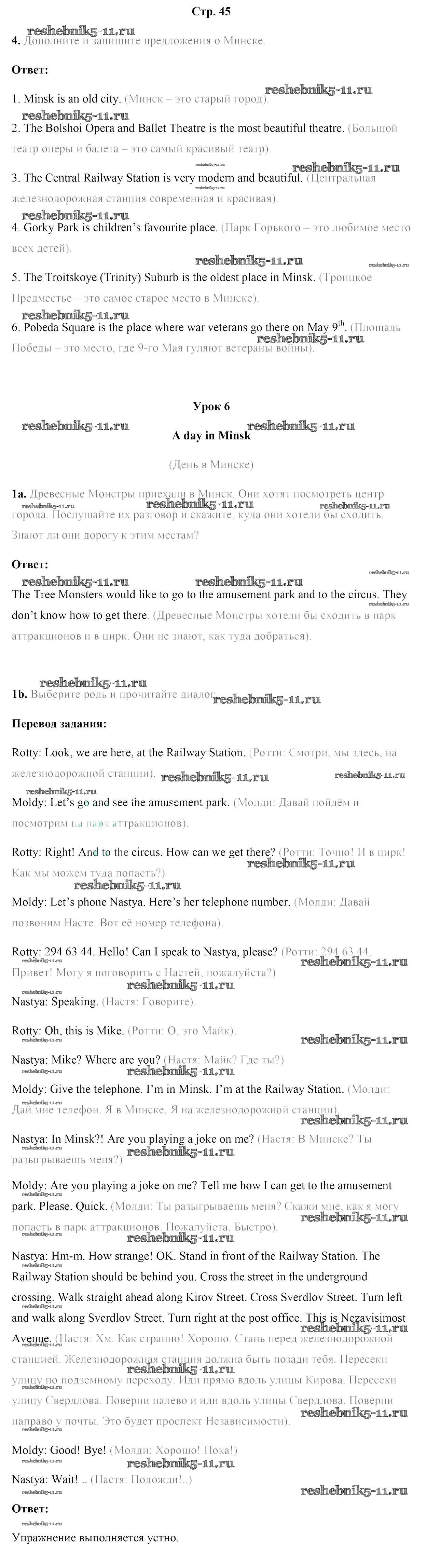 Готовая домашняя работа с ответами по Английскому языку за 5 класс Лапицкая, Калишевич, Севрюкова, Седунова Учебник Часть 1, 2 Народная асвета 2020 ФГОС - Часть 2. Страницы 45