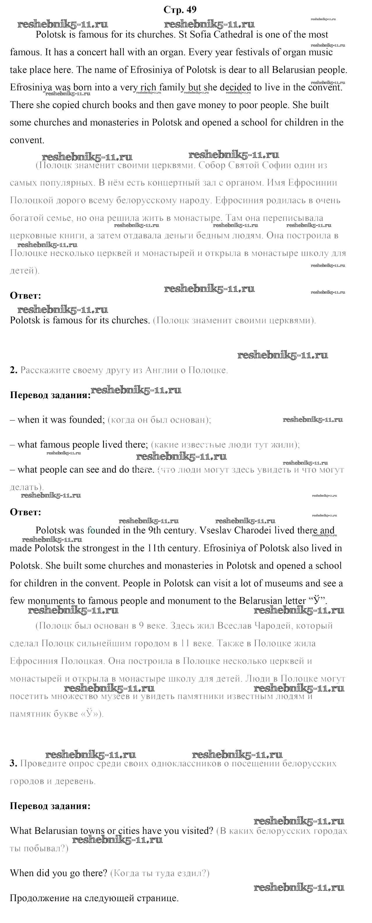 Готовая домашняя работа с ответами по Английскому языку за 5 класс Лапицкая, Калишевич, Севрюкова, Седунова Учебник Часть 1, 2 Народная асвета 2020 ФГОС - Часть 2. Страницы 49