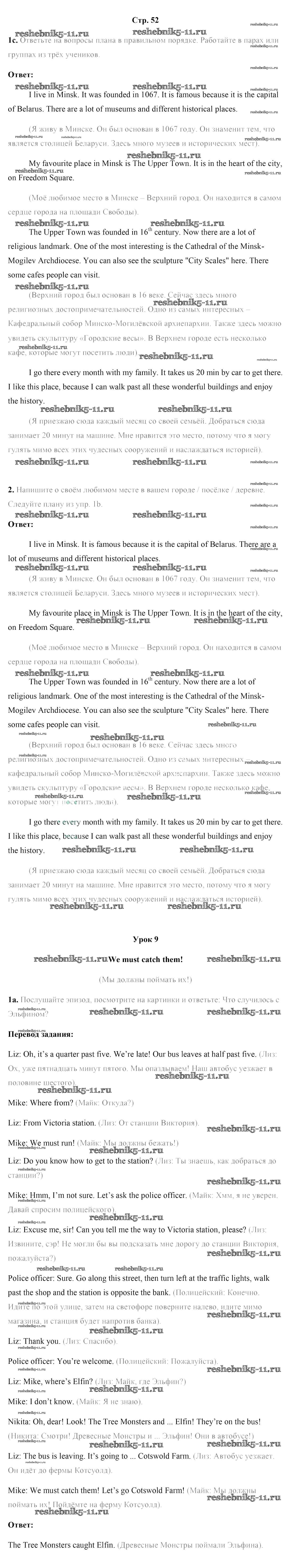 Готовая домашняя работа с ответами по Английскому языку за 5 класс Лапицкая, Калишевич, Севрюкова, Седунова Учебник Часть 1, 2 Народная асвета 2020 ФГОС - Часть 2. Страницы 52