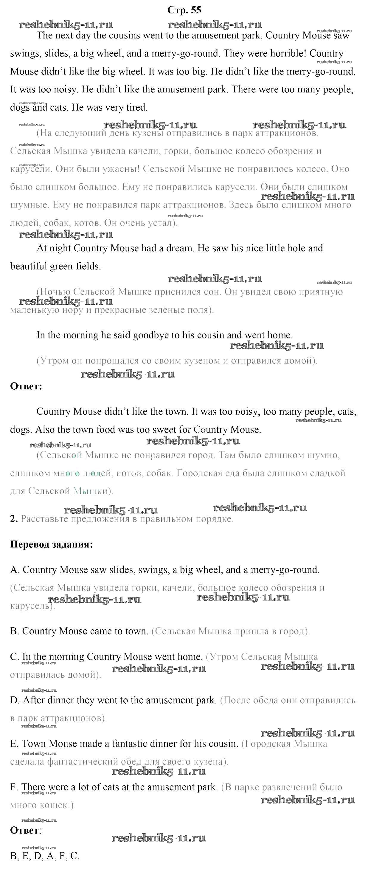 Готовая домашняя работа с ответами по Английскому языку за 5 класс Лапицкая, Калишевич, Севрюкова, Седунова Учебник Часть 1, 2 Народная асвета 2020 ФГОС - Часть 2. Страницы 55