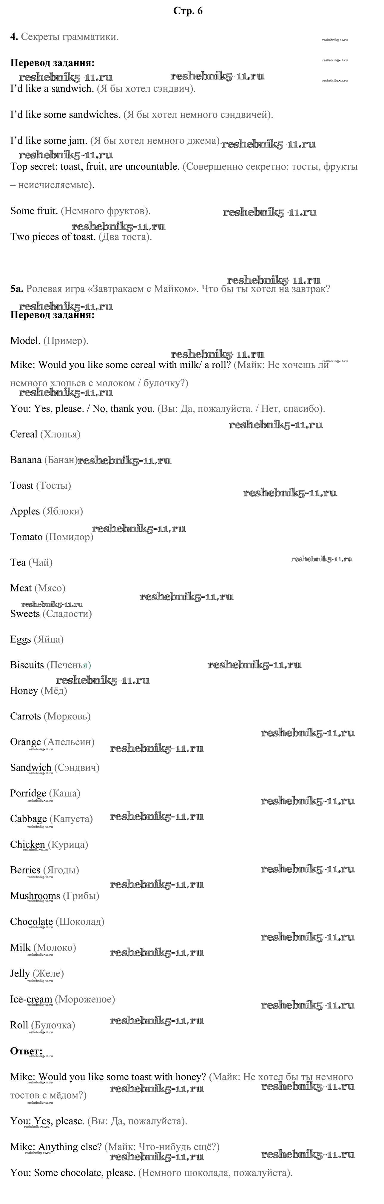 Готовая домашняя работа с ответами по Английскому языку за 5 класс Лапицкая, Калишевич, Севрюкова, Седунова Учебник Часть 1, 2 Народная асвета 2020 ФГОС - Часть 2. Страницы 6