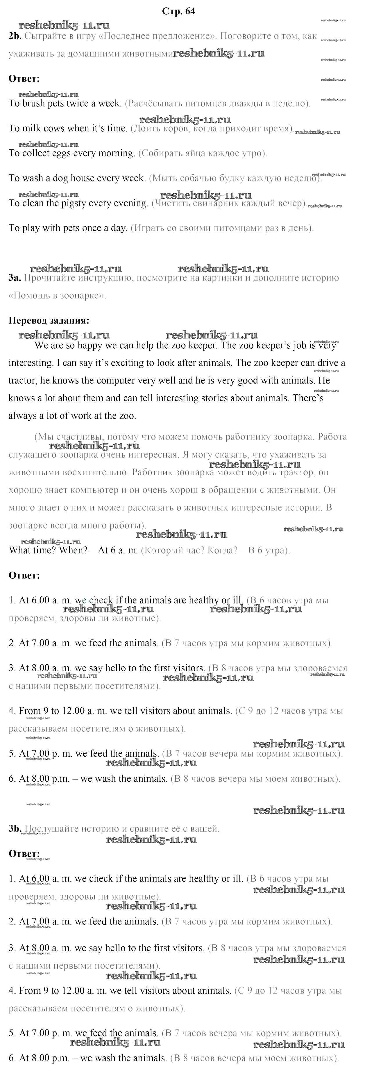Готовая домашняя работа с ответами по Английскому языку за 5 класс Лапицкая, Калишевич, Севрюкова, Седунова Учебник Часть 1, 2 Народная асвета 2020 ФГОС - Часть 2. Страницы 64
