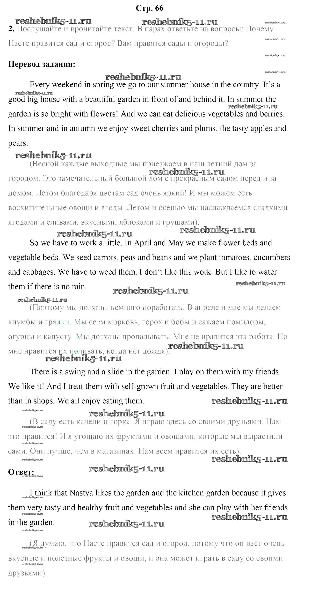 Готовая домашняя работа с ответами по Английскому языку за 5 класс Лапицкая, Калишевич, Севрюкова, Седунова Учебник Часть 1, 2 Народная асвета 2020 ФГОС - Часть 2. Страницы 66