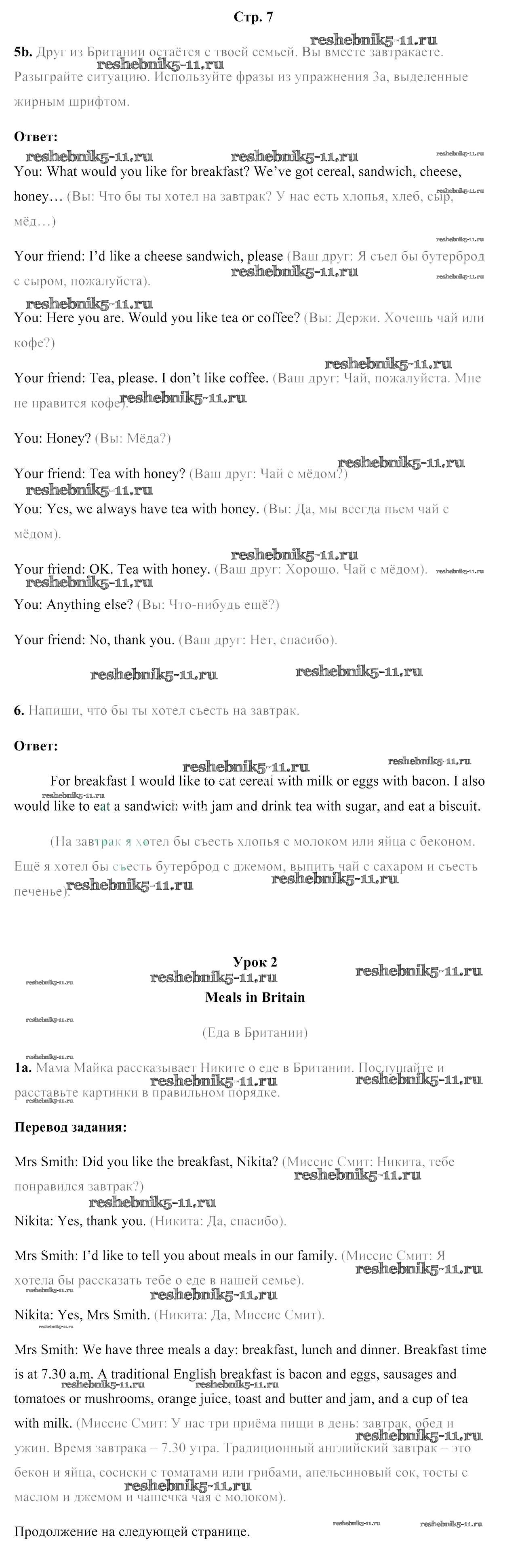 Готовая домашняя работа с ответами по Английскому языку за 5 класс Лапицкая, Калишевич, Севрюкова, Седунова Учебник Часть 1, 2 Народная асвета 2020 ФГОС - Часть 2. Страницы 7