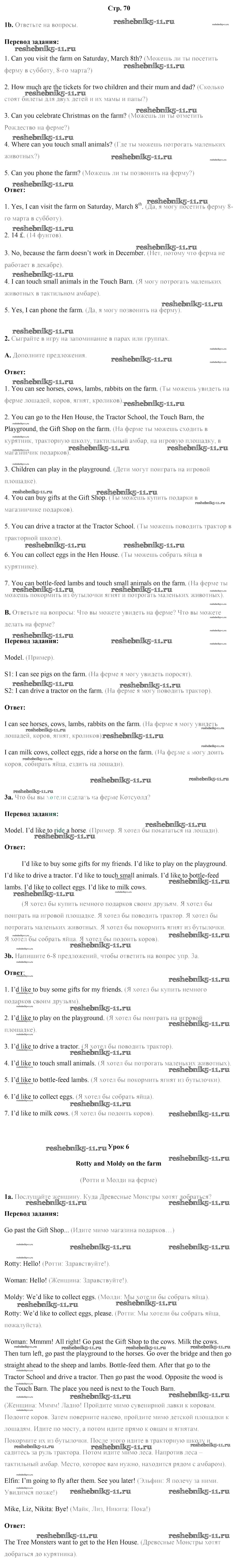Готовая домашняя работа с ответами по Английскому языку за 5 класс Лапицкая, Калишевич, Севрюкова, Седунова Учебник Часть 1, 2 Народная асвета 2020 ФГОС - Часть 2. Страницы 70