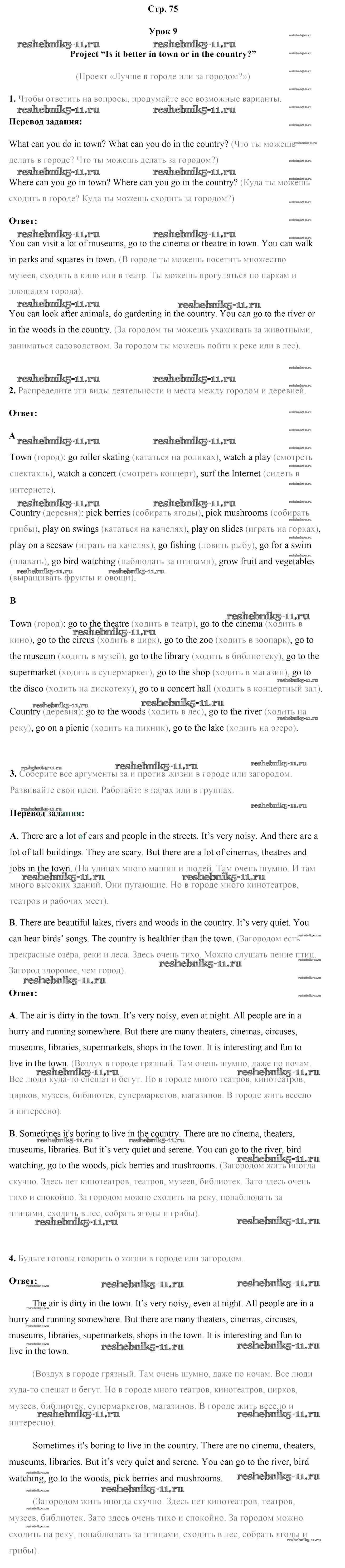 Готовая домашняя работа с ответами по Английскому языку за 5 класс Лапицкая, Калишевич, Севрюкова, Седунова Учебник Часть 1, 2 Народная асвета 2020 ФГОС - Часть 2. Страницы 75