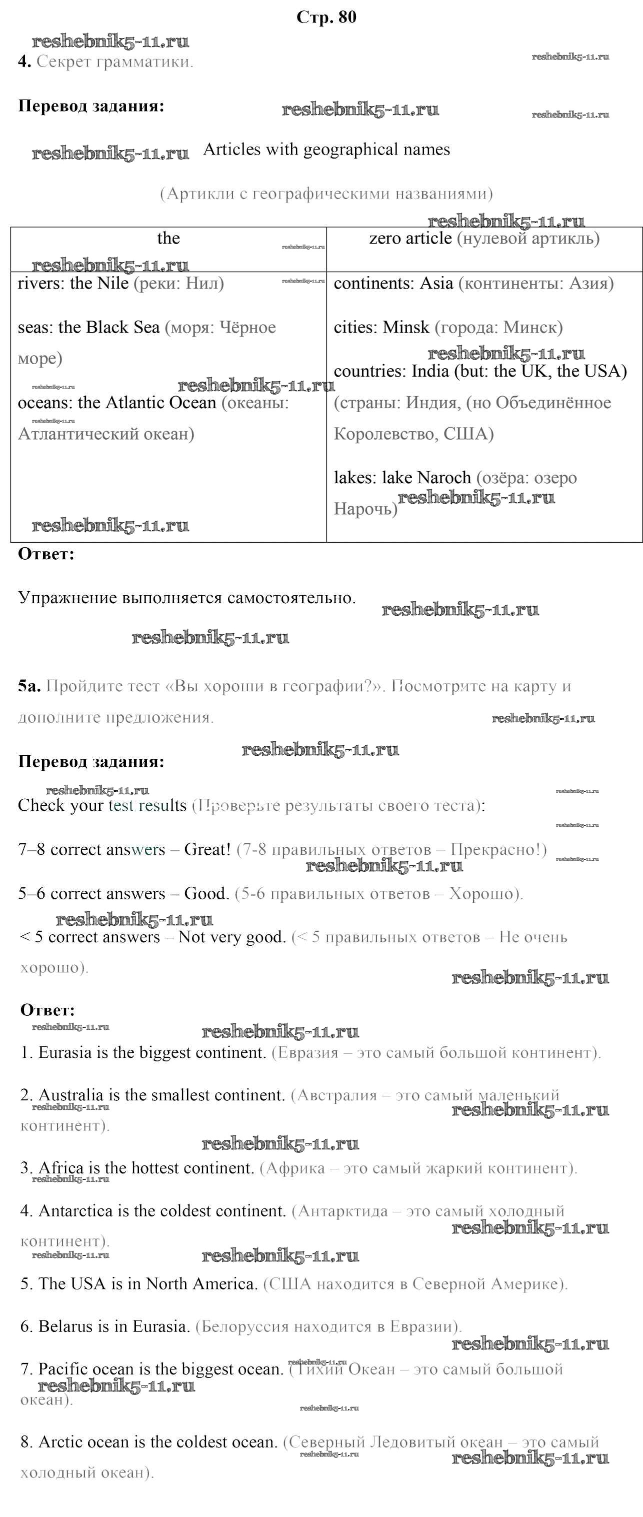 Готовая домашняя работа с ответами по Английскому языку за 5 класс Лапицкая, Калишевич, Севрюкова, Седунова Учебник Часть 1, 2 Народная асвета 2020 ФГОС - Часть 2. Страницы 80