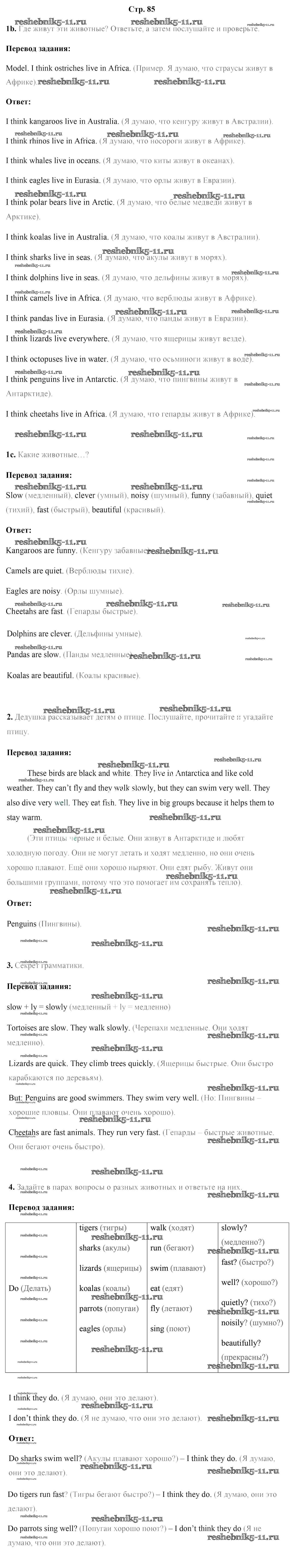 Готовая домашняя работа с ответами по Английскому языку за 5 класс Лапицкая, Калишевич, Севрюкова, Седунова Учебник Часть 1, 2 Народная асвета 2020 ФГОС - Часть 2. Страницы 85