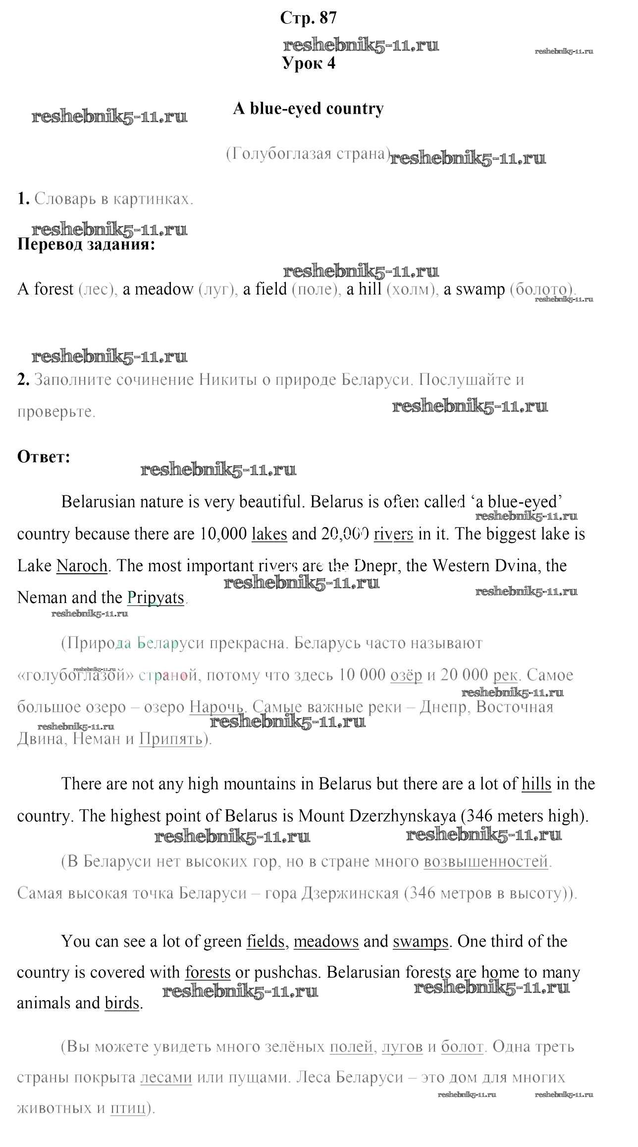 Готовая домашняя работа с ответами по Английскому языку за 5 класс Лапицкая, Калишевич, Севрюкова, Седунова Учебник Часть 1, 2 Народная асвета 2020 ФГОС - Часть 2. Страницы 87