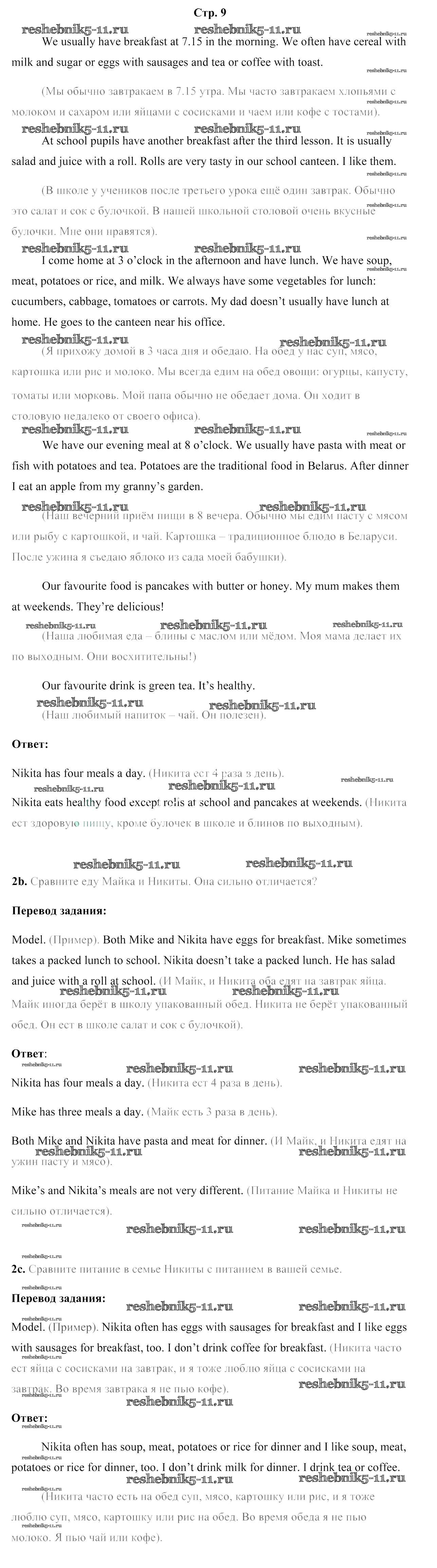Готовая домашняя работа с ответами по Английскому языку за 5 класс Лапицкая, Калишевич, Севрюкова, Седунова Учебник Часть 1, 2 Народная асвета 2020 ФГОС - Часть 2. Страницы 9