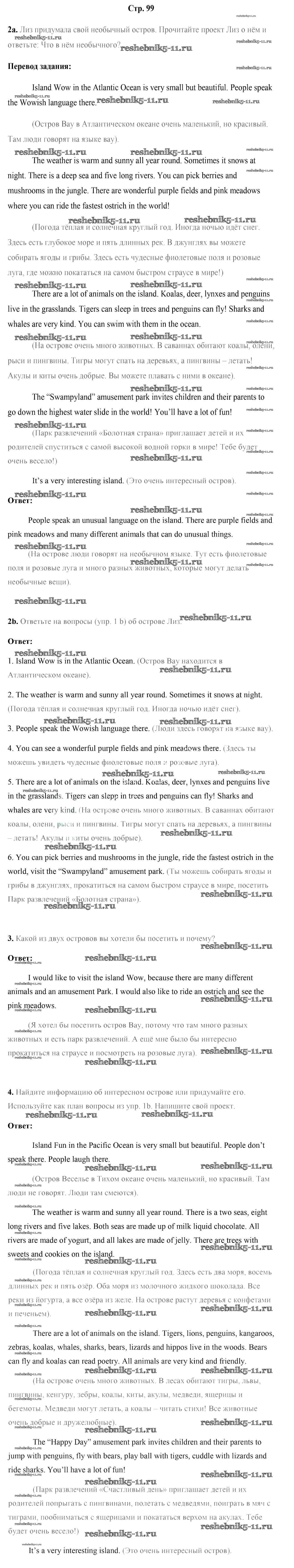 Готовая домашняя работа с ответами по Английскому языку за 5 класс Лапицкая, Калишевич, Севрюкова, Седунова Учебник Часть 1, 2 Народная асвета 2020 ФГОС - Часть 2. Страницы 99