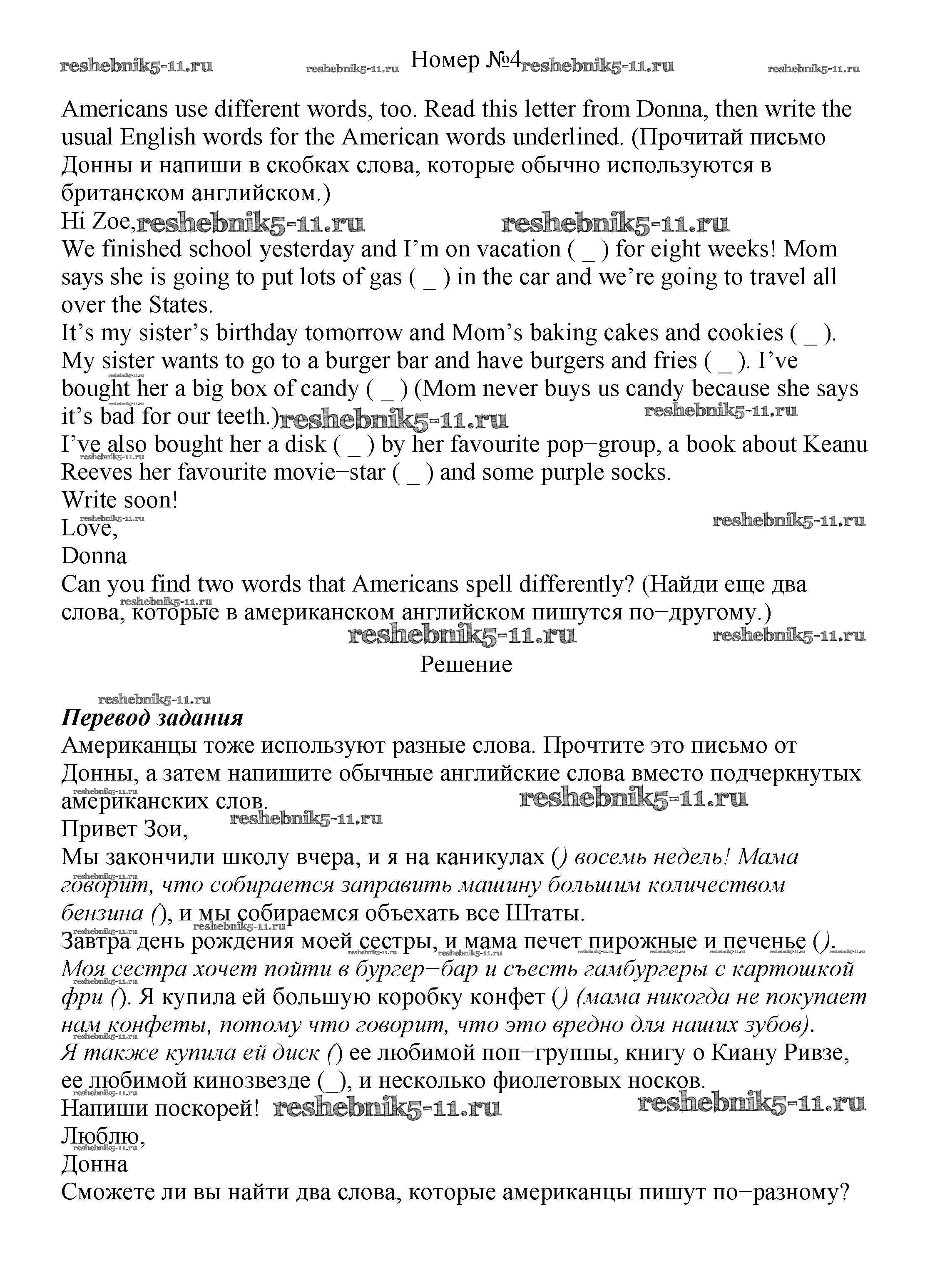 Готовая домашняя работа с ответами по Английскому языку за 5 класс Вербицкая, Твердохлебова, Уорд, Уорелл, Эббс Рабочая тетрадь Forward Вентана-граф 2016 ФГОС - Unit 8. Holidays in the USA 4