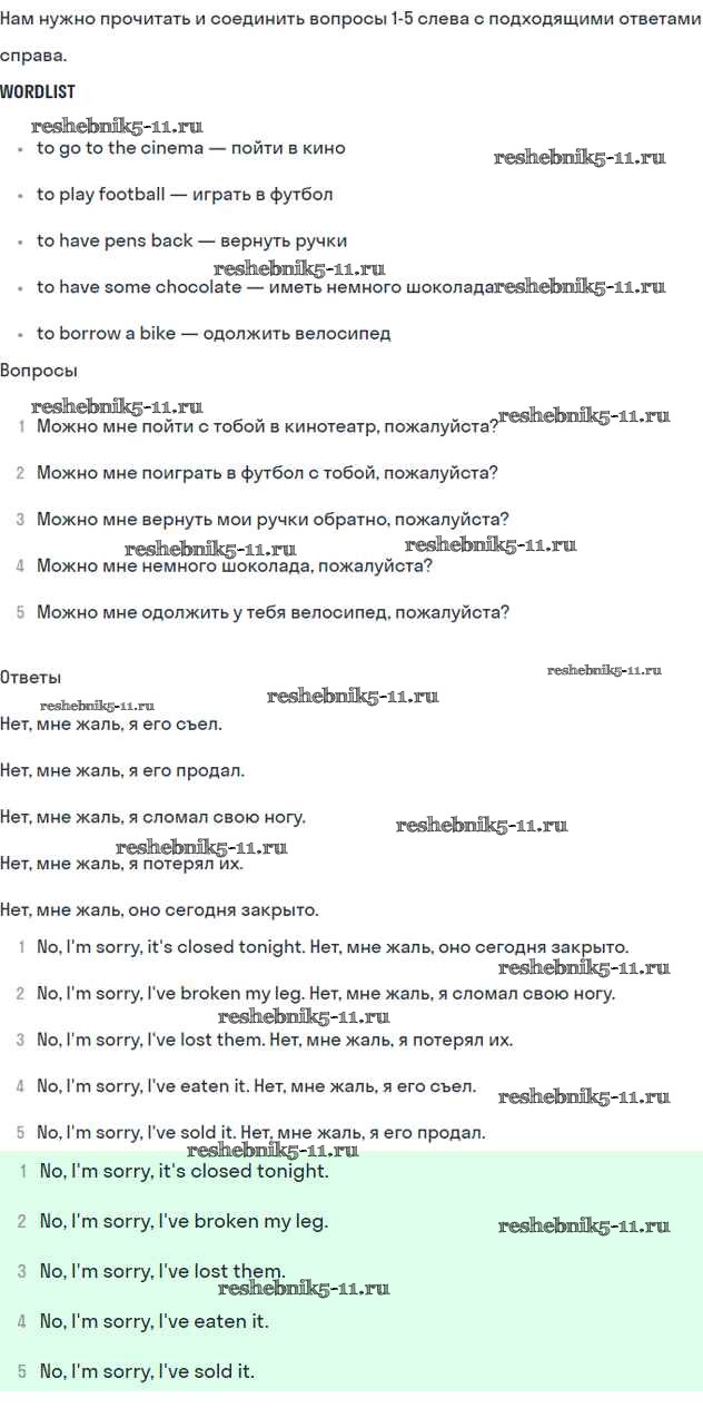 Готовая домашняя работа с ответами по Английскому языку за 5 класс Вербицкая, Твердохлебова, Уорд, Уорелл, Эббс Рабочая тетрадь Forward Вентана-граф 2016 ФГОС - Unit 11. Can we speak to Rik Morell, please? 2