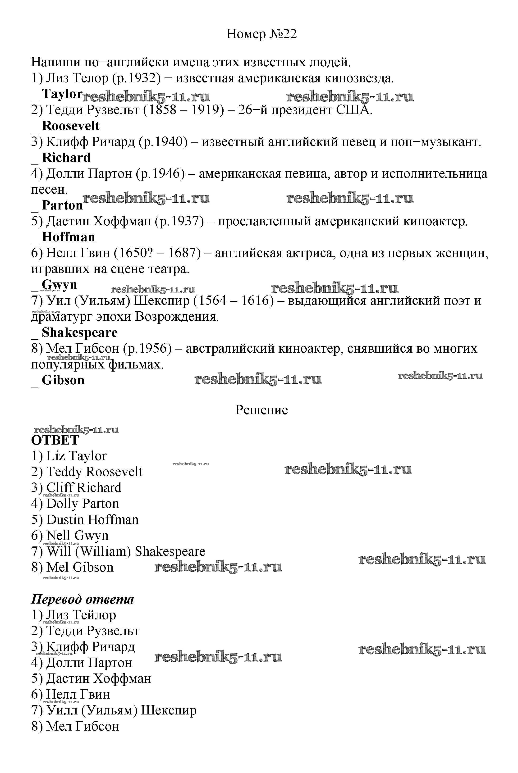 Готовая домашняя работа с ответами по Английскому языку за 5 класс Афанасьева, Михеева Рабочая тетрадь Новый курс Часть 1, 2 Дрофа 2017 ФГОС - Unit 1 22