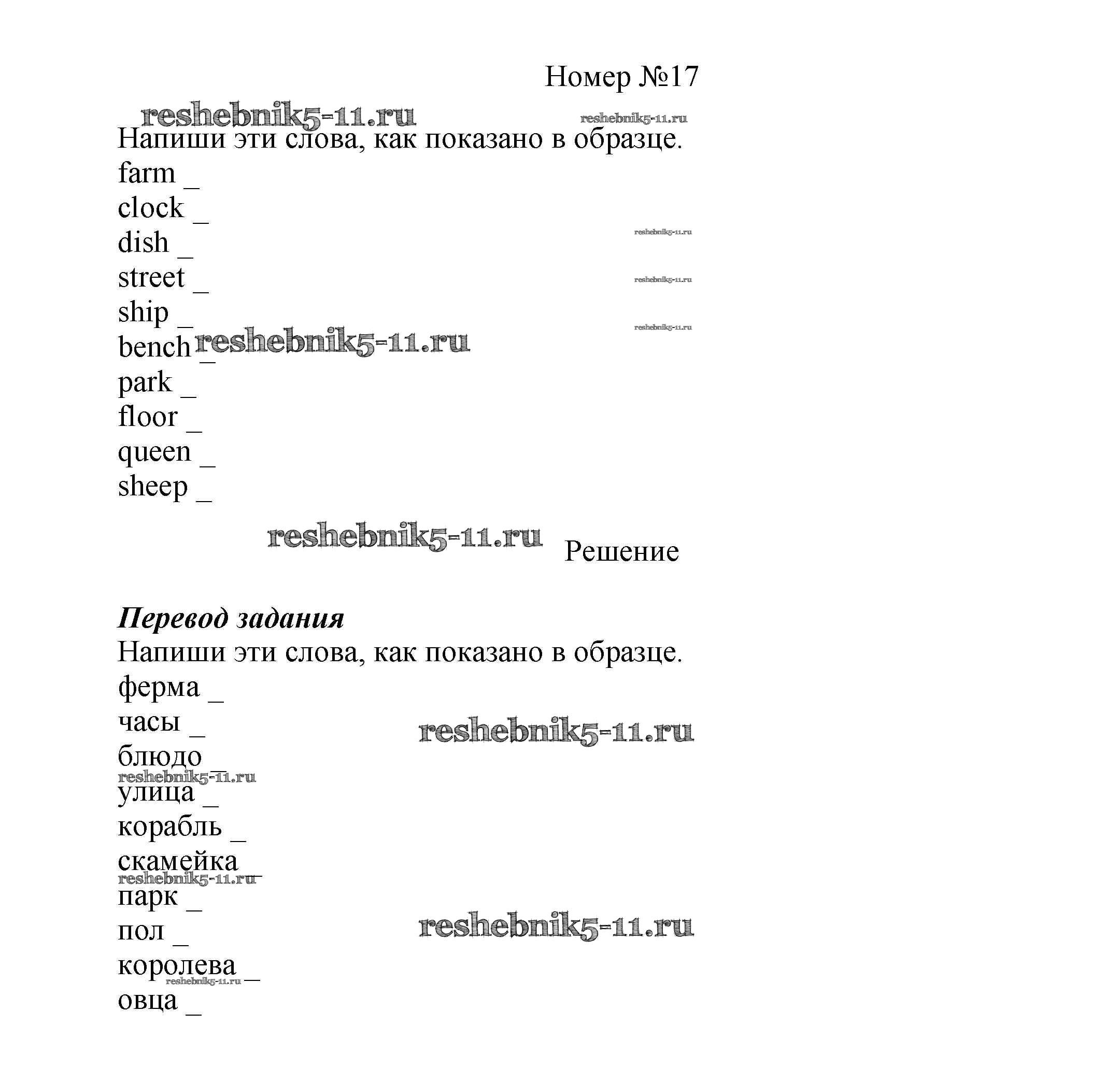 Готовая домашняя работа с ответами по Английскому языку за 5 класс Афанасьева, Михеева Рабочая тетрадь Новый курс Часть 1, 2 Дрофа 2017 ФГОС - Unit 2 17