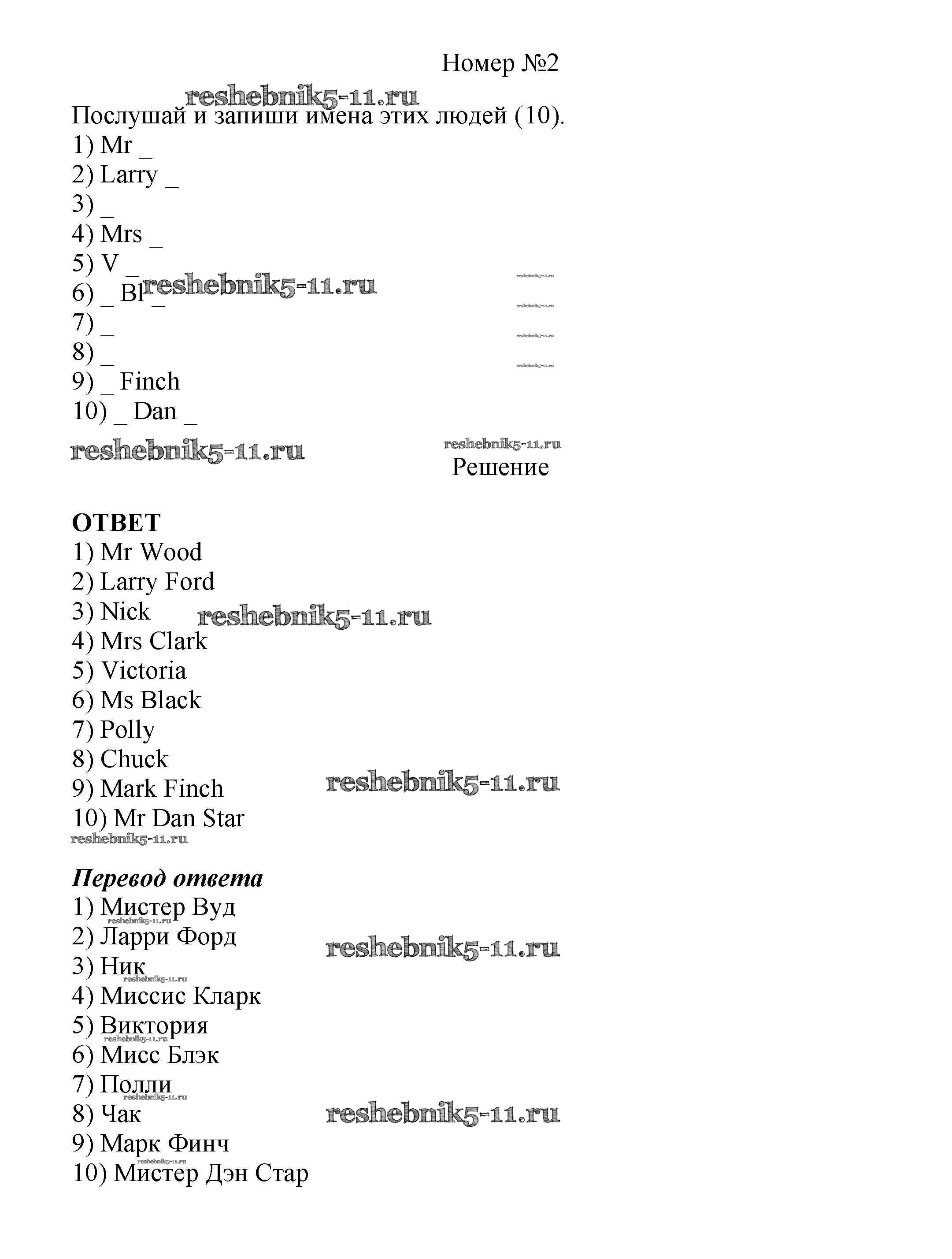 Готовая домашняя работа с ответами по Английскому языку за 5 класс Афанасьева, Михеева Рабочая тетрадь Новый курс Часть 1, 2 Дрофа 2017 ФГОС - Unit 2 2